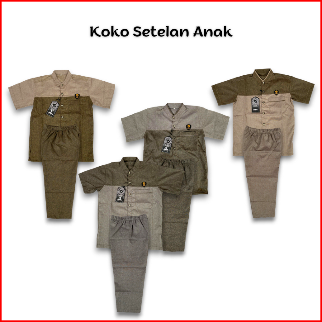 Setelan Kemeja Koko Anak Trending Terbaru Bahan Katun Madina 4 - 9 Tahun