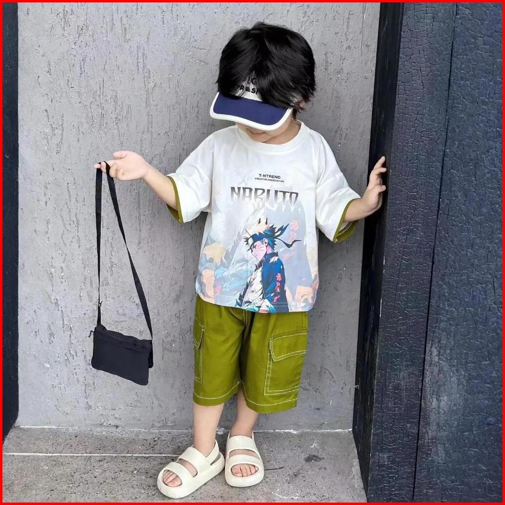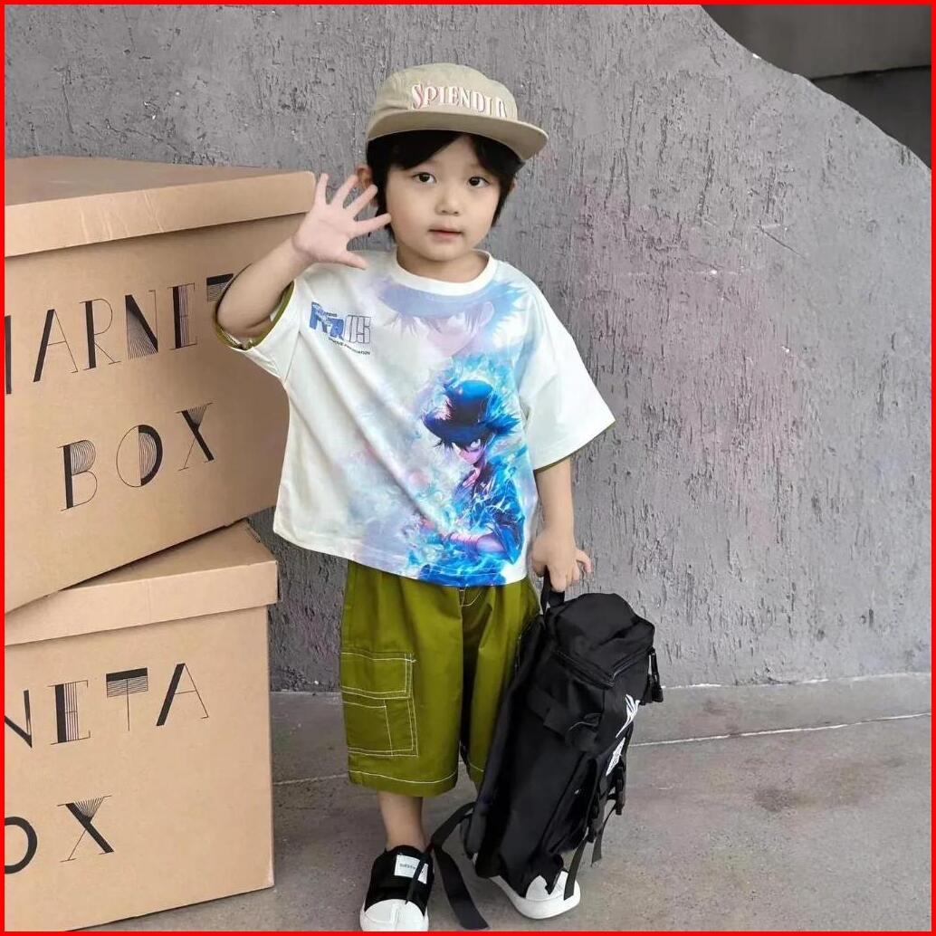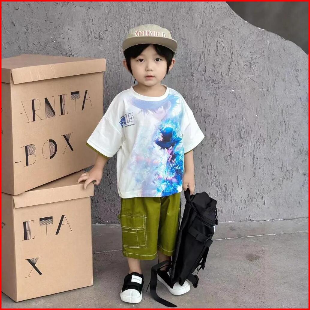 Empat Terakhir Setelan Baju Anak Laki Laki 2-7 Tahun Celana Cargo Katun Kaos Kartun One Set Anak
