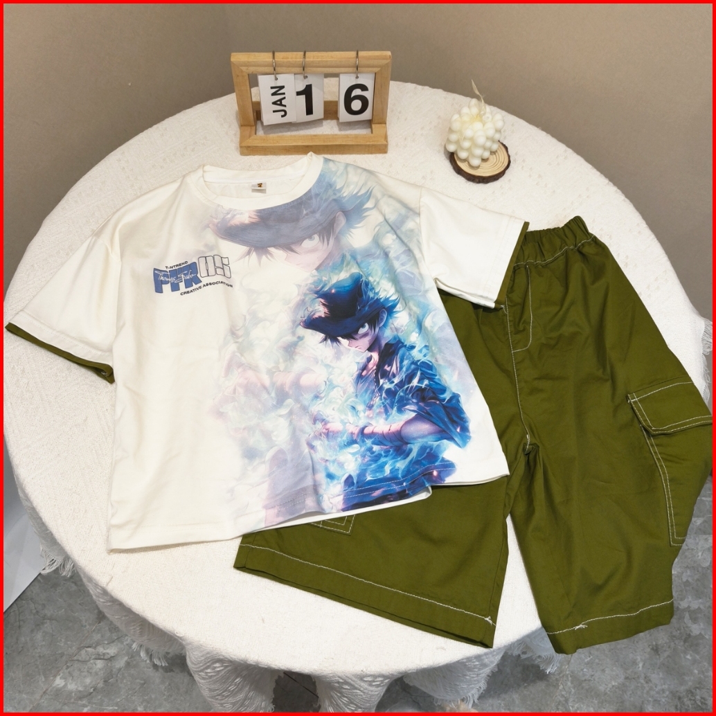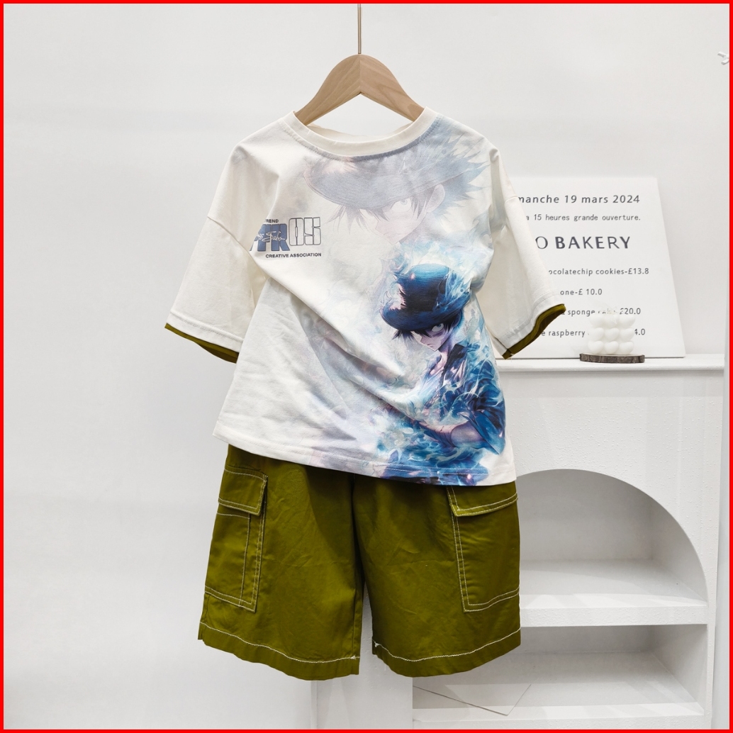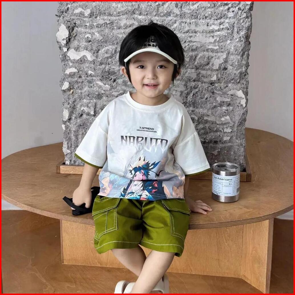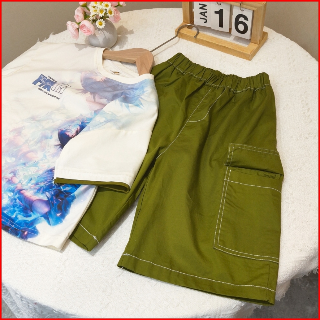 Empat Terakhir Setelan Baju Anak Laki Laki 2-7 Tahun Celana Cargo Katun Kaos Kartun One Set Anak