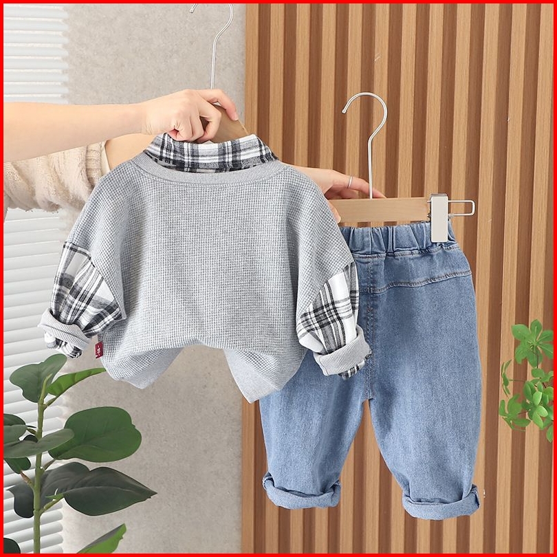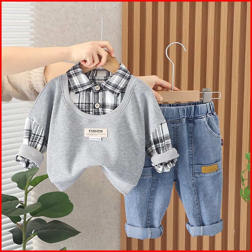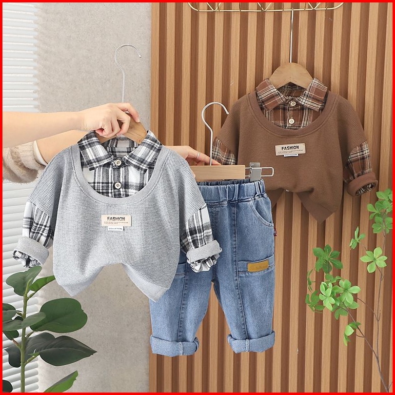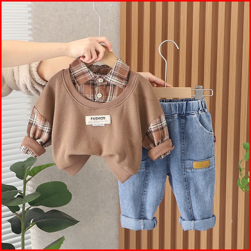 Setelan Sweater Kemeja Kotak-kotak Auriga Anak Laki-laki Import 6 Bulan Sampai 5tahun