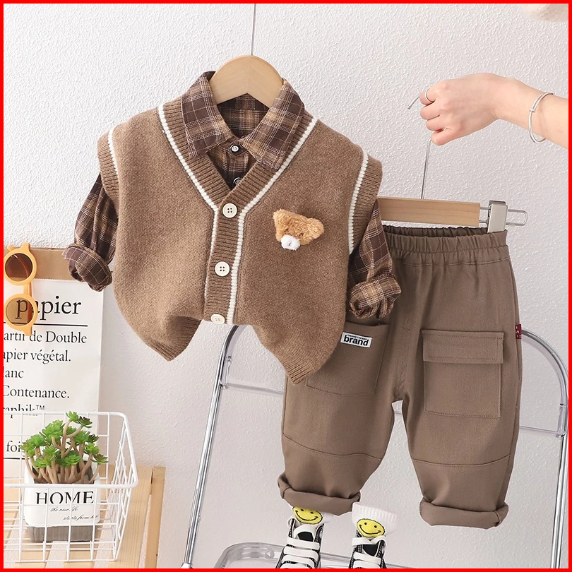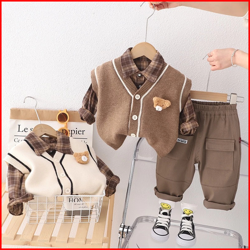 Heybaby - Set Stanley Ebv Setelan 3in1 Kemeja Bayi Anak Laki-laki Lengan Panjang Berkualitas
