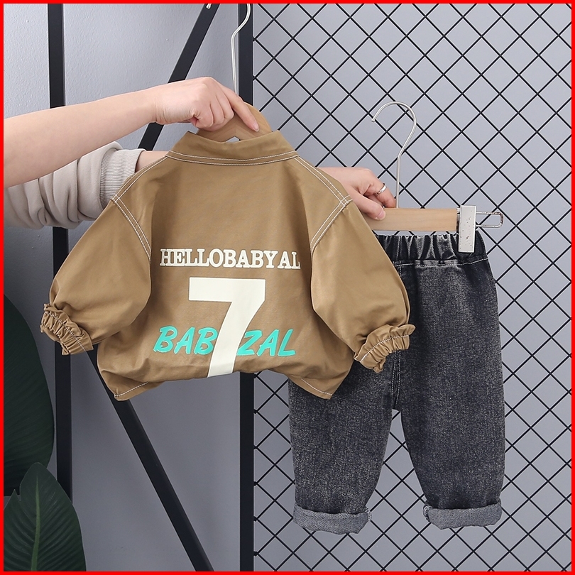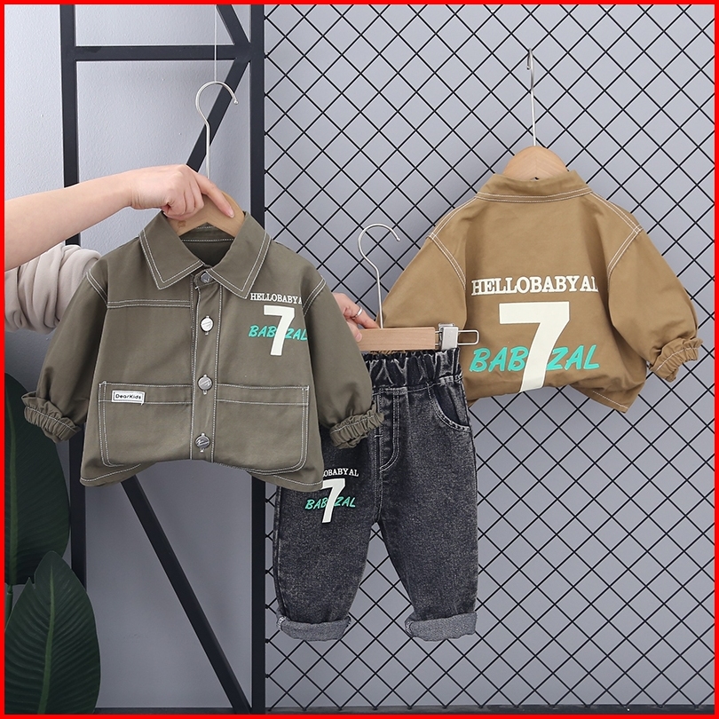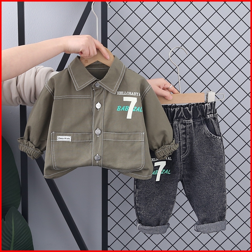 Setelan Kemeja Anak Laki Laki Import Setelan Kemeja Lengan Panjang Model Denim Dengan Angka 7 Besar Impor Setelan 2pcs K