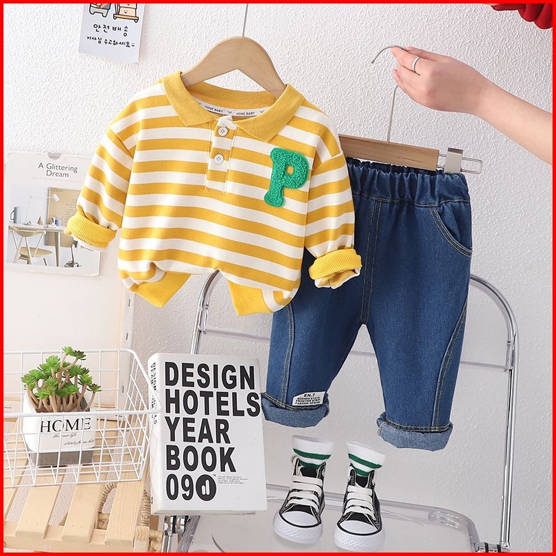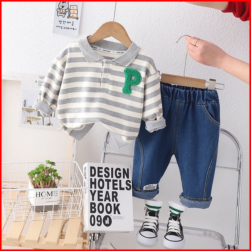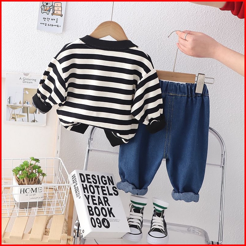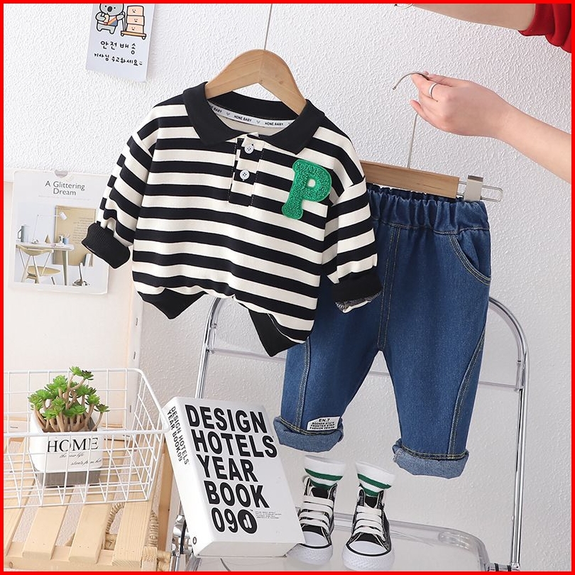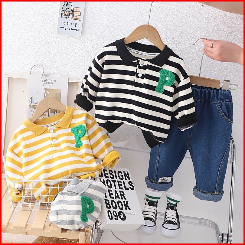 Setelan Anak Laki-laki Import Setelan Anak Lengan Panjang Setelan Anak Laki-laki Keren Setelan Anak Motif Salur
