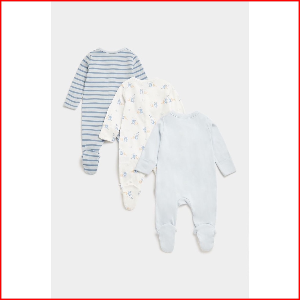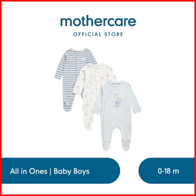 Mothercare My First Woodland All-in-ones - 3 Pack - Set Terusan Bayi Laki-laki Biru