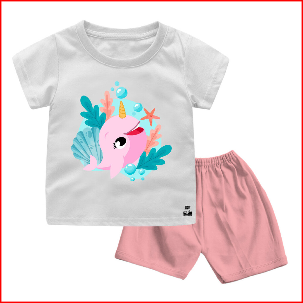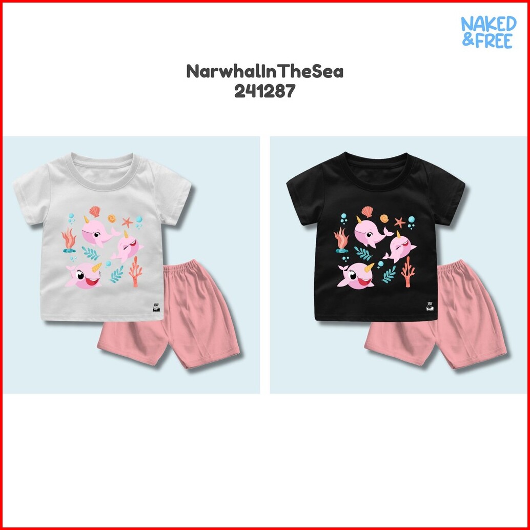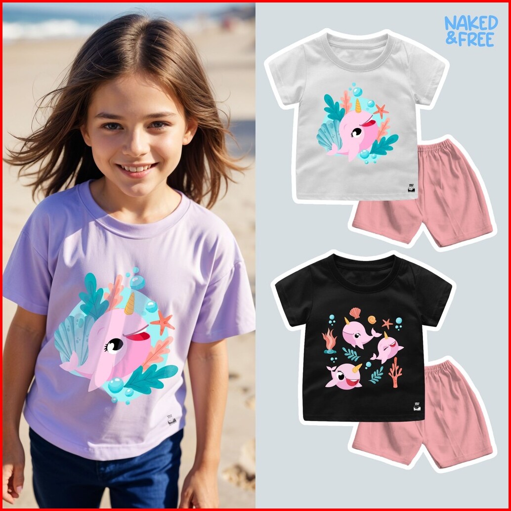Naked Free Setelan Pendek Bayi Anak Perempuan Nafwhal Series Narwhal Bubble In The Sea Bahan Katun