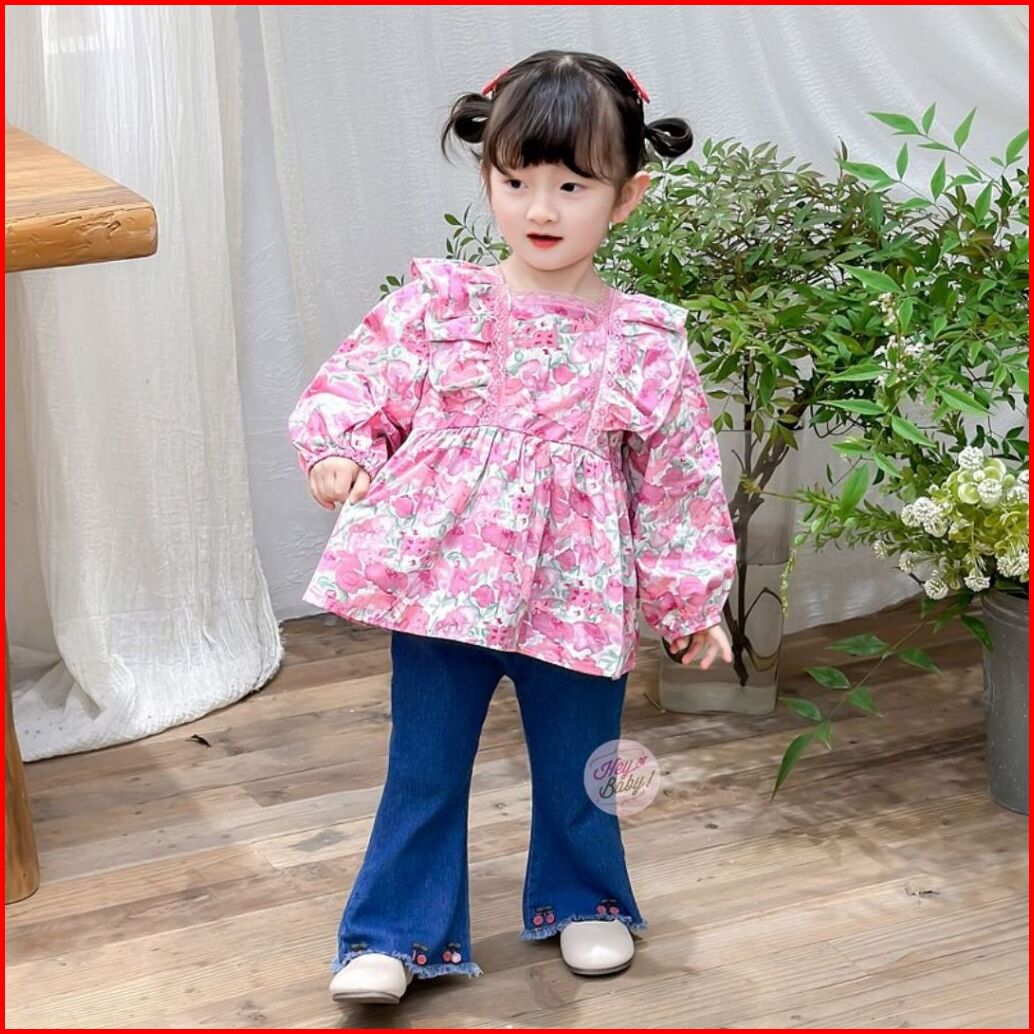Heybaby - Set Cherry Denim Ebv Baju Setelan Anak Perempuan Celana Denim Berkualitas 1-6 Tahun Motif Bunga