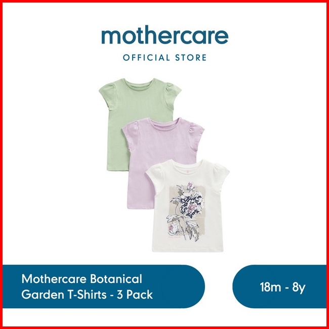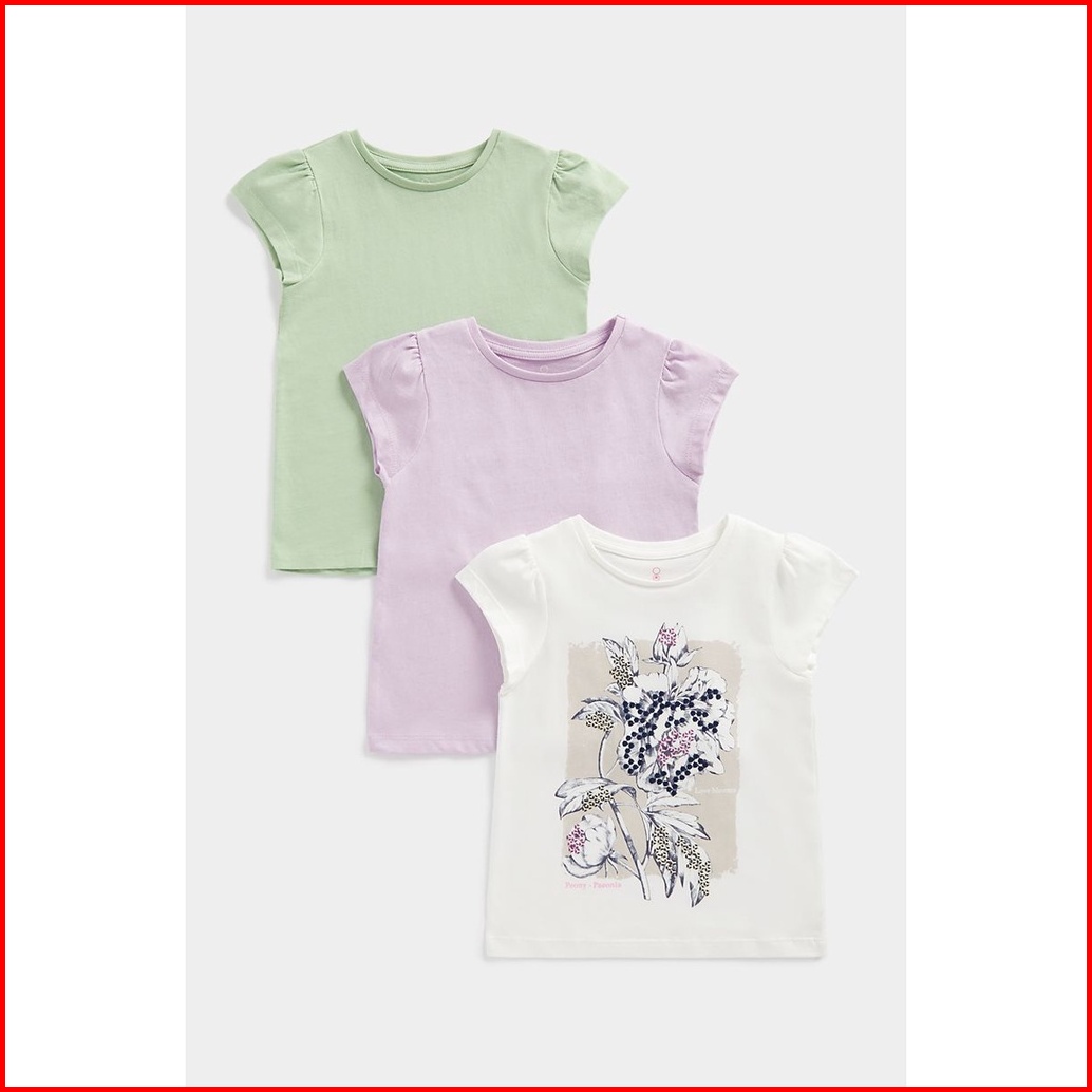 Mothercare Botanical Garden T-shirts - 3 Pack - Set Kaos Anak Perempuan Multicolor