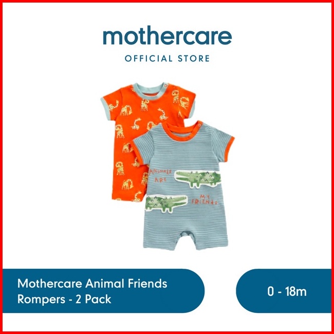 Mothercare Animal Friends Rompers - 2 Pack - Set Terusan Bayi Laki-laki Multi