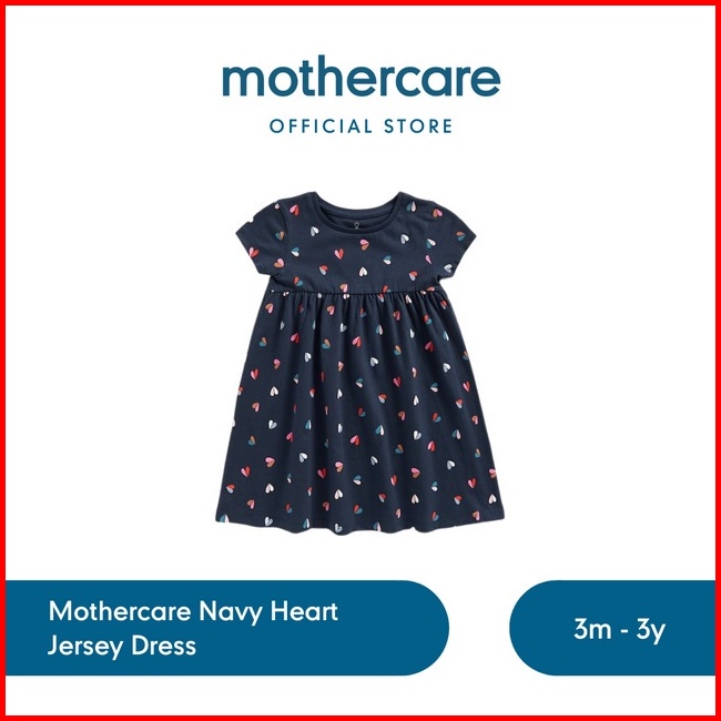 Mothercare Navy Heart Jersey Dress - Dress Bayi Perempuan Biru