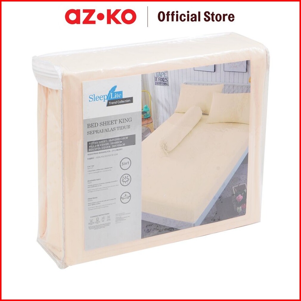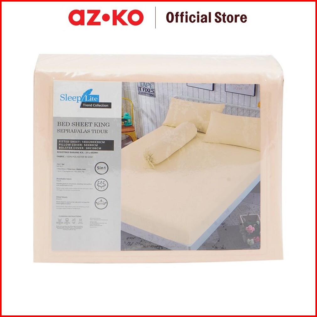 Azko Sleeplite 180x200 Cm Set 5 Pcs Seprai King Polyester Butter Cream Sprei Polos Seprai Aesthetic Seprei Sheet Set Bed