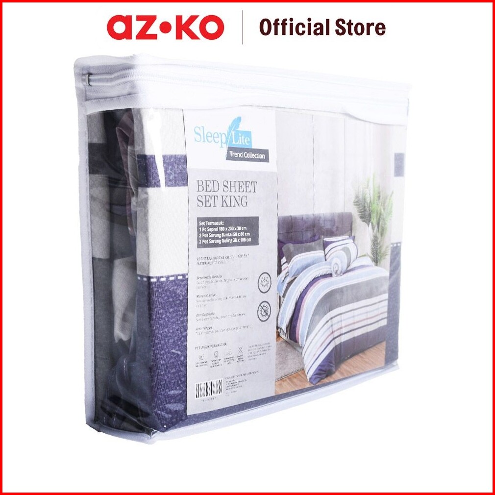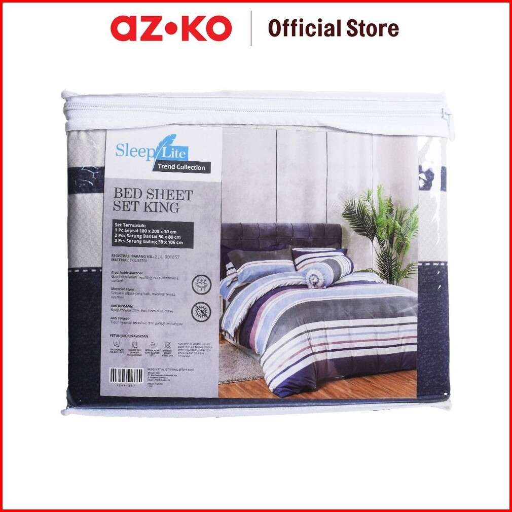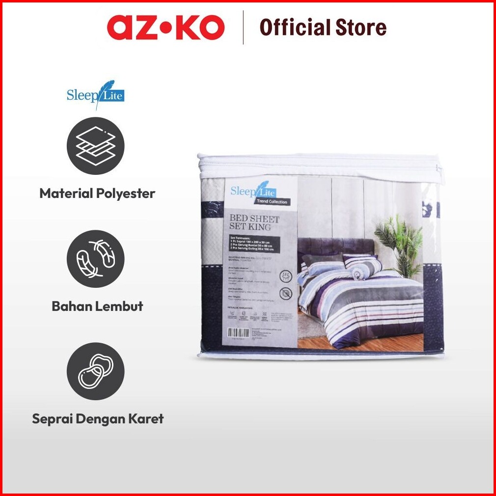 Azko Sleeplite 180x200 Cm Set 5 Pcs Seprai King Polyester Stripe Skye Sprei Seprai Aesthetic Seprei Sheet Set Bed Sheet