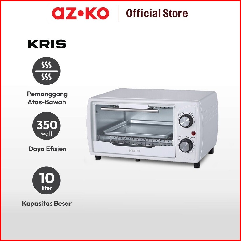 Azko Kris 10 Ltr Oven Toaster 350 Watt - Putih Pemanggang Roti Bread Grill Pembuat Makanan