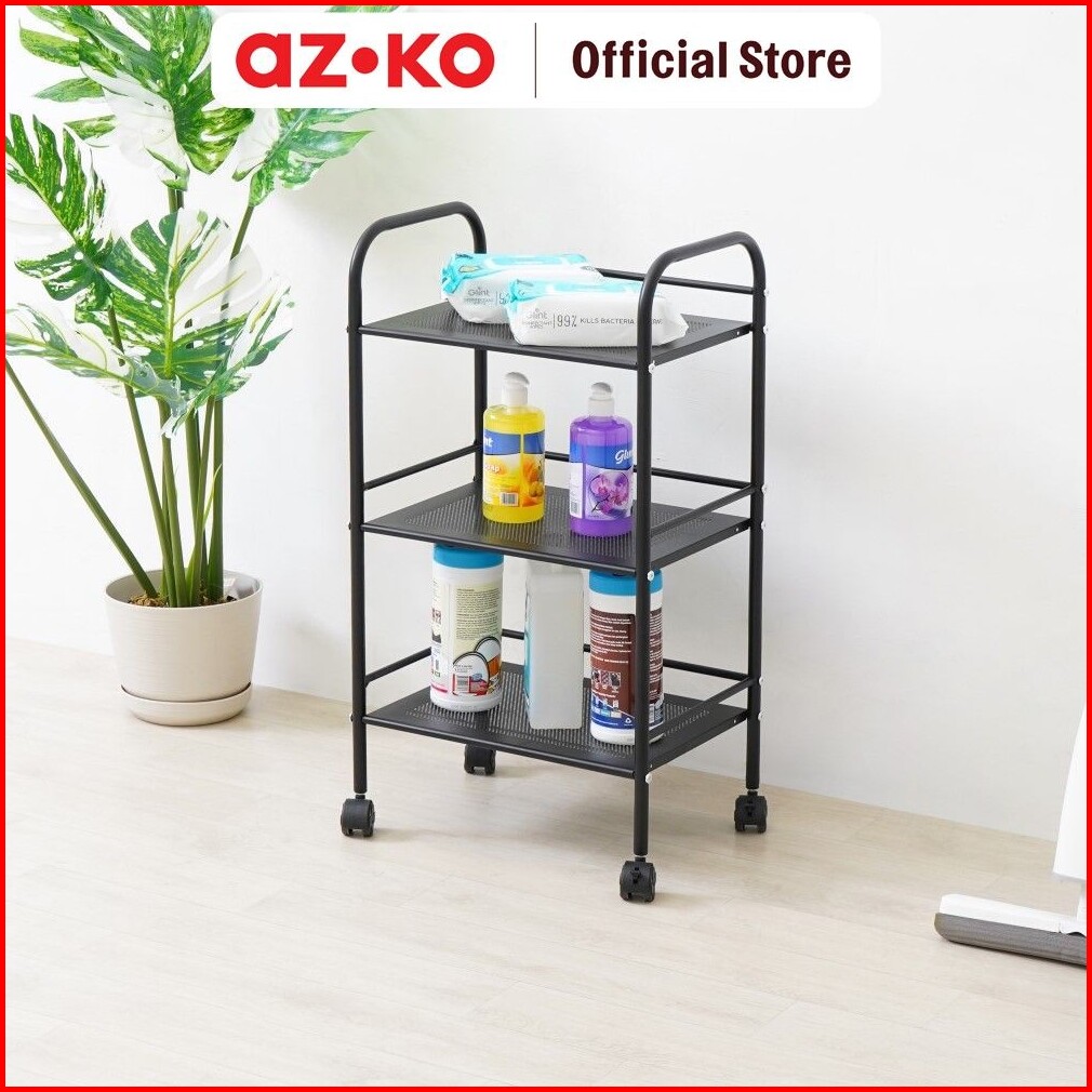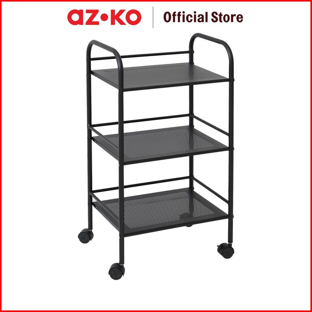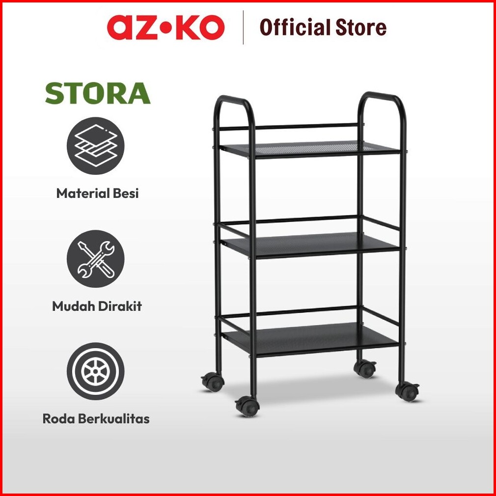 Azko Stora 40x28.4x74 Cm Rak Troli 3 Tingkat - Hitam Organizer Trolley Rak Penyimpanan Tak Rumah