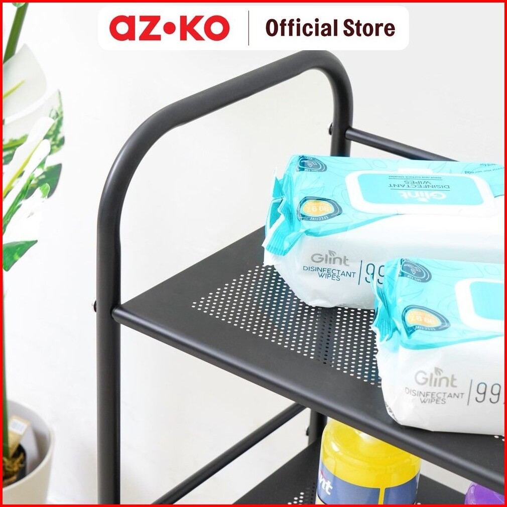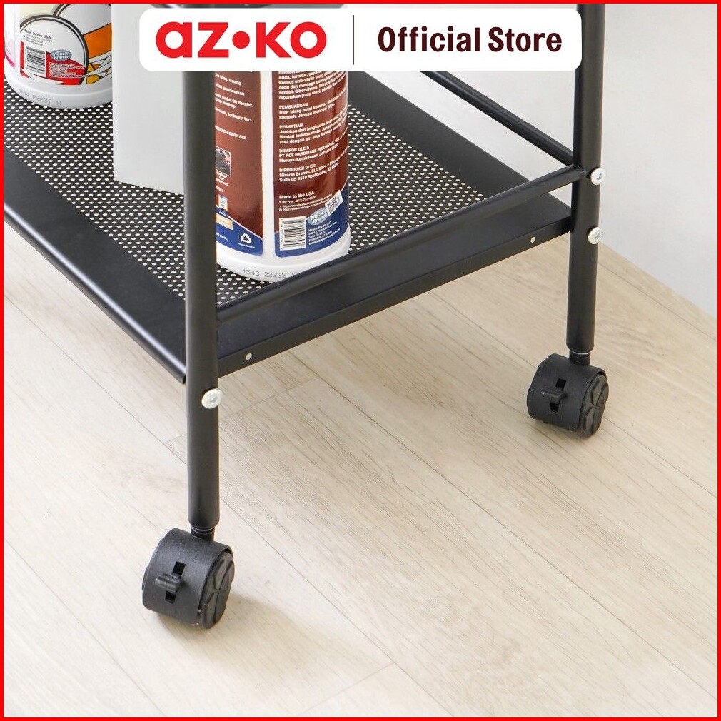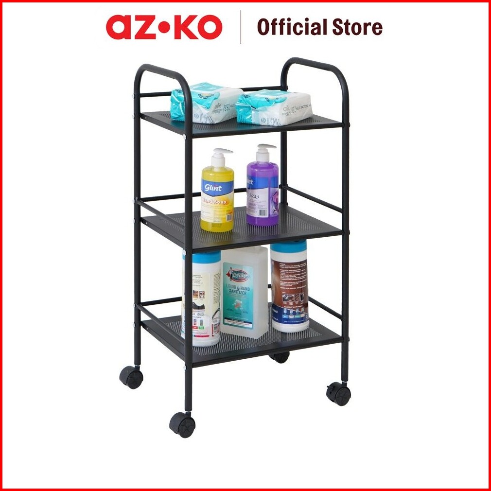Azko Stora 40x28.4x74 Cm Rak Troli 3 Tingkat - Hitam Organizer Trolley Rak Penyimpanan Tak Rumah