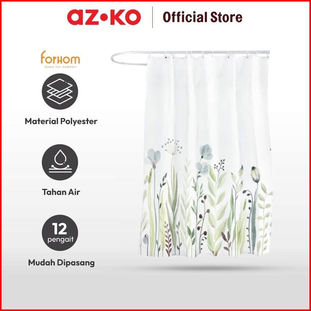 Azko Forhom 180x180 Cm Tirai Kamar Mandi Dengan Hooks Botanica Gorden Penutup Ruang Shower Curtain Shower Perlengkapan K