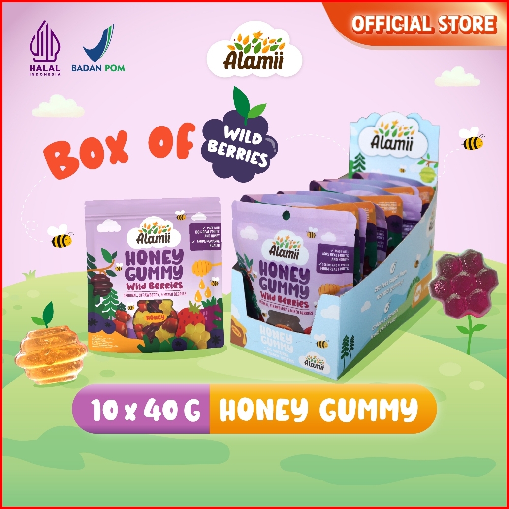 Alamii Honey Gummy - Box Isi 10 X 40g Wild Berries Permen Gummy Sehat