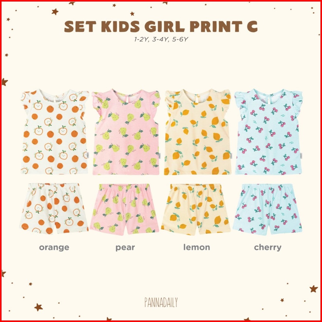 Bohopanna - Pannadaily - Set Kids Girl Print - Fruits Series - Baju Setelan Anak Perempuan