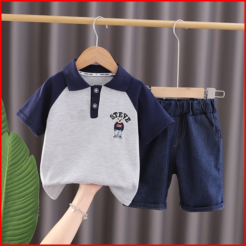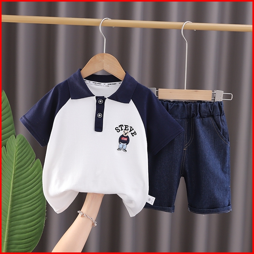 Fashion Polo Baju Kaos Anak Setelan Casual Tampan Baju Kaos Anak Laki Laki Jas Anak Cewek Imut Set Dua Potong Import Set