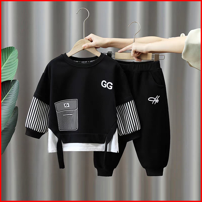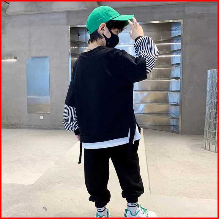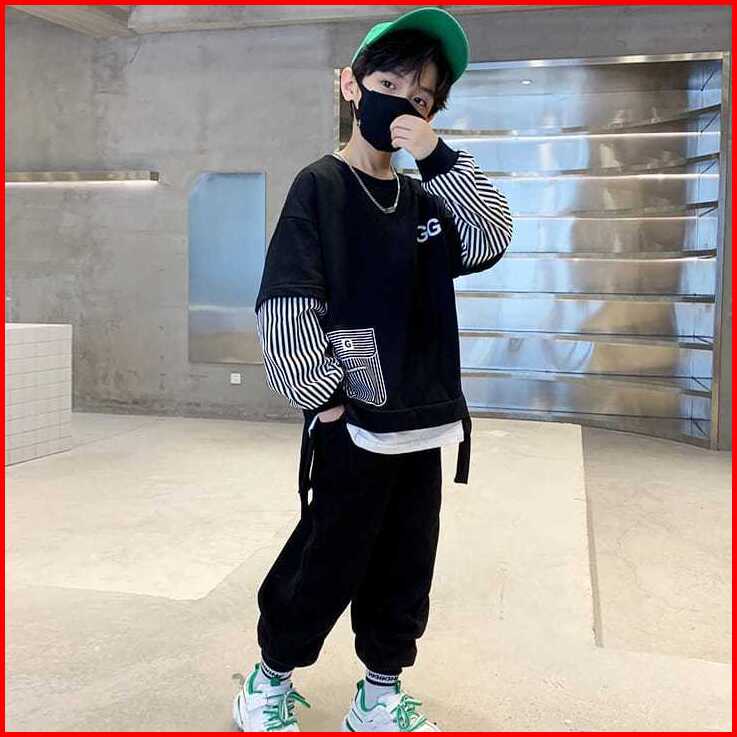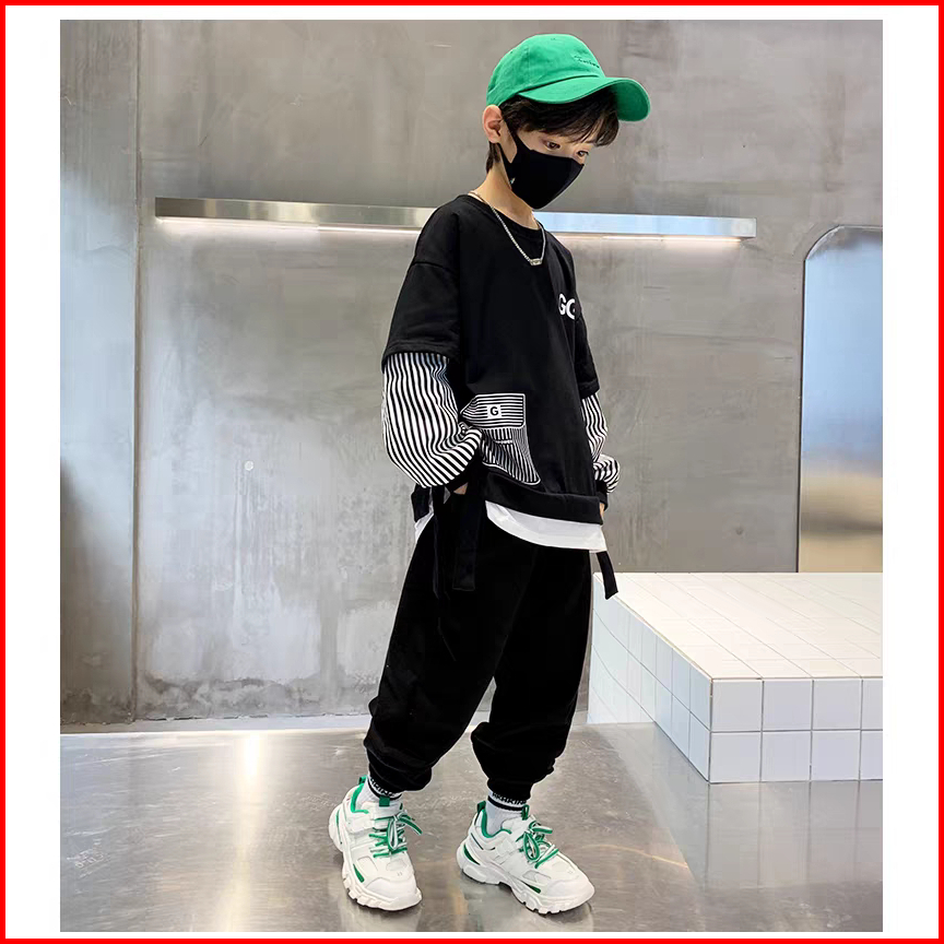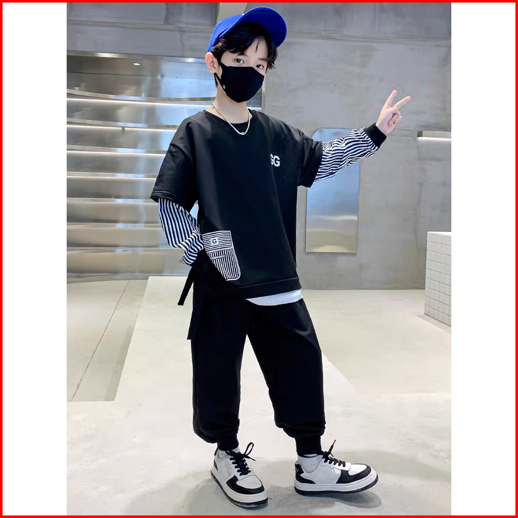 Meandboss Ssl1-5-14thn Setelan Set Anak Laki Cowok Teenager Abg Lengan Celana Panjang Style Santai