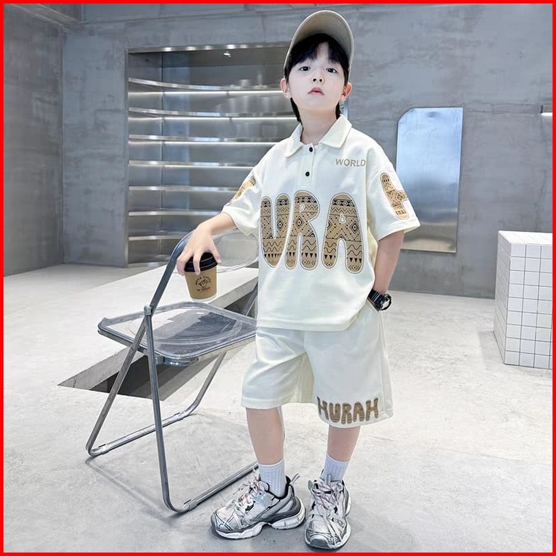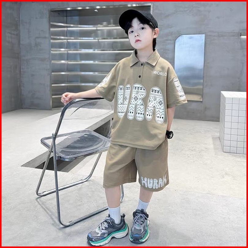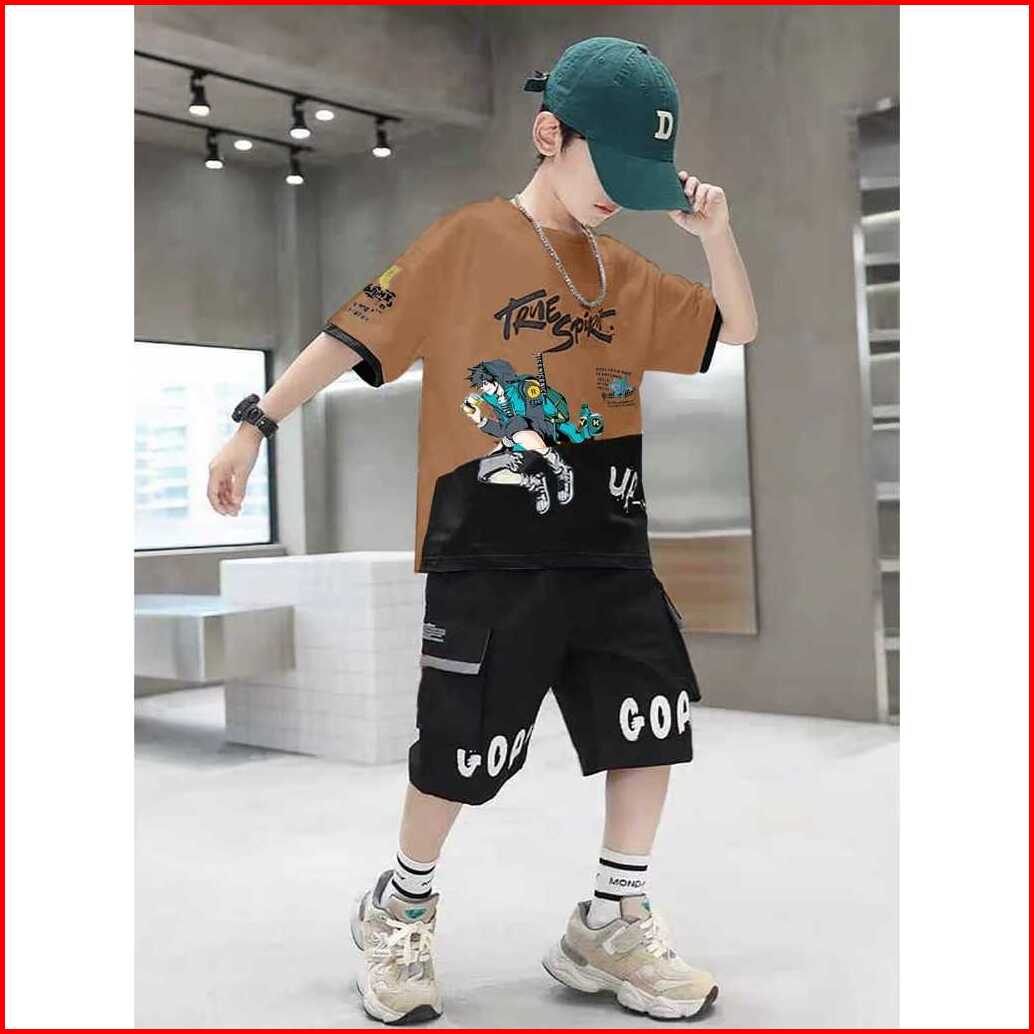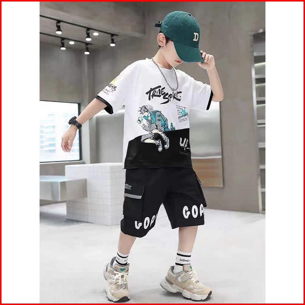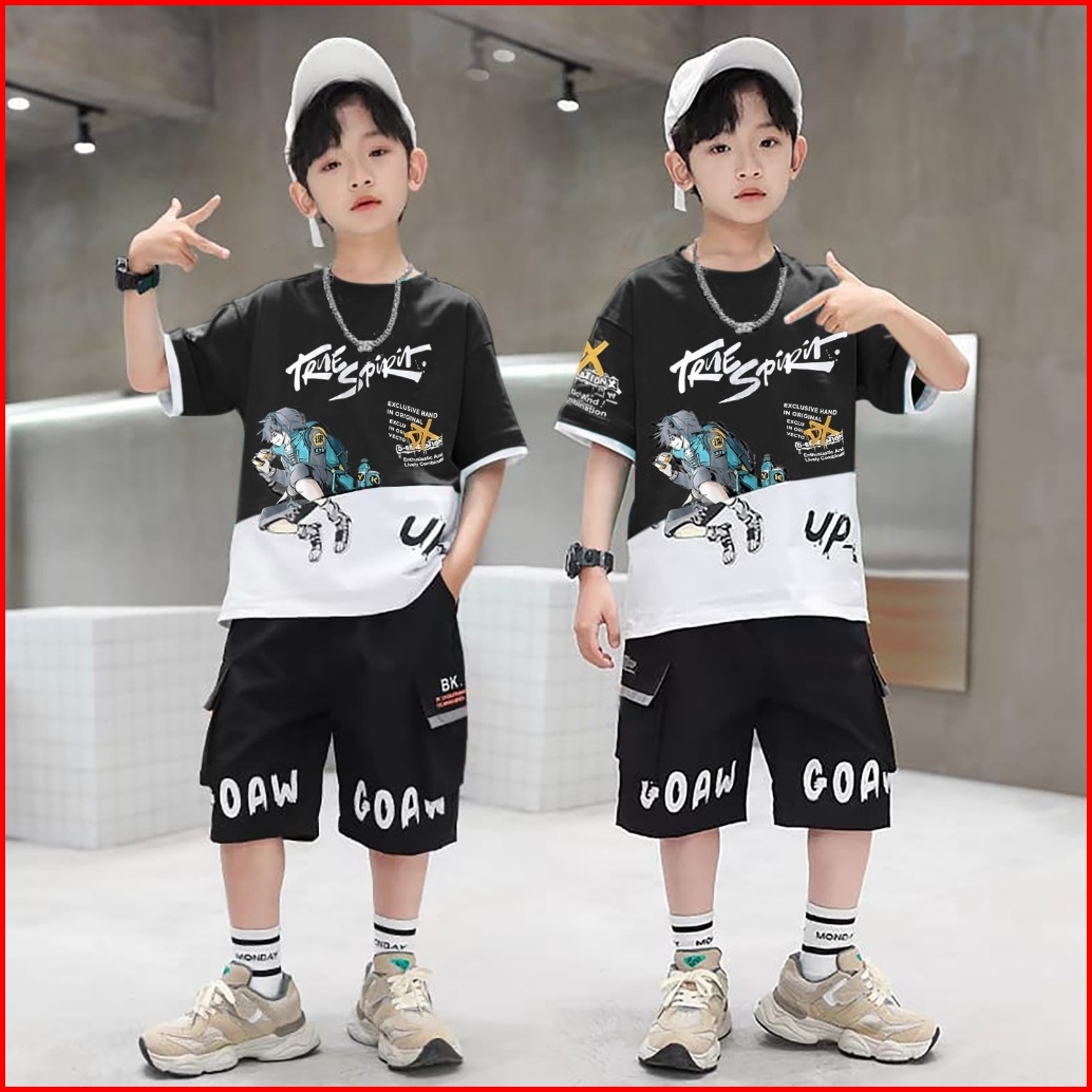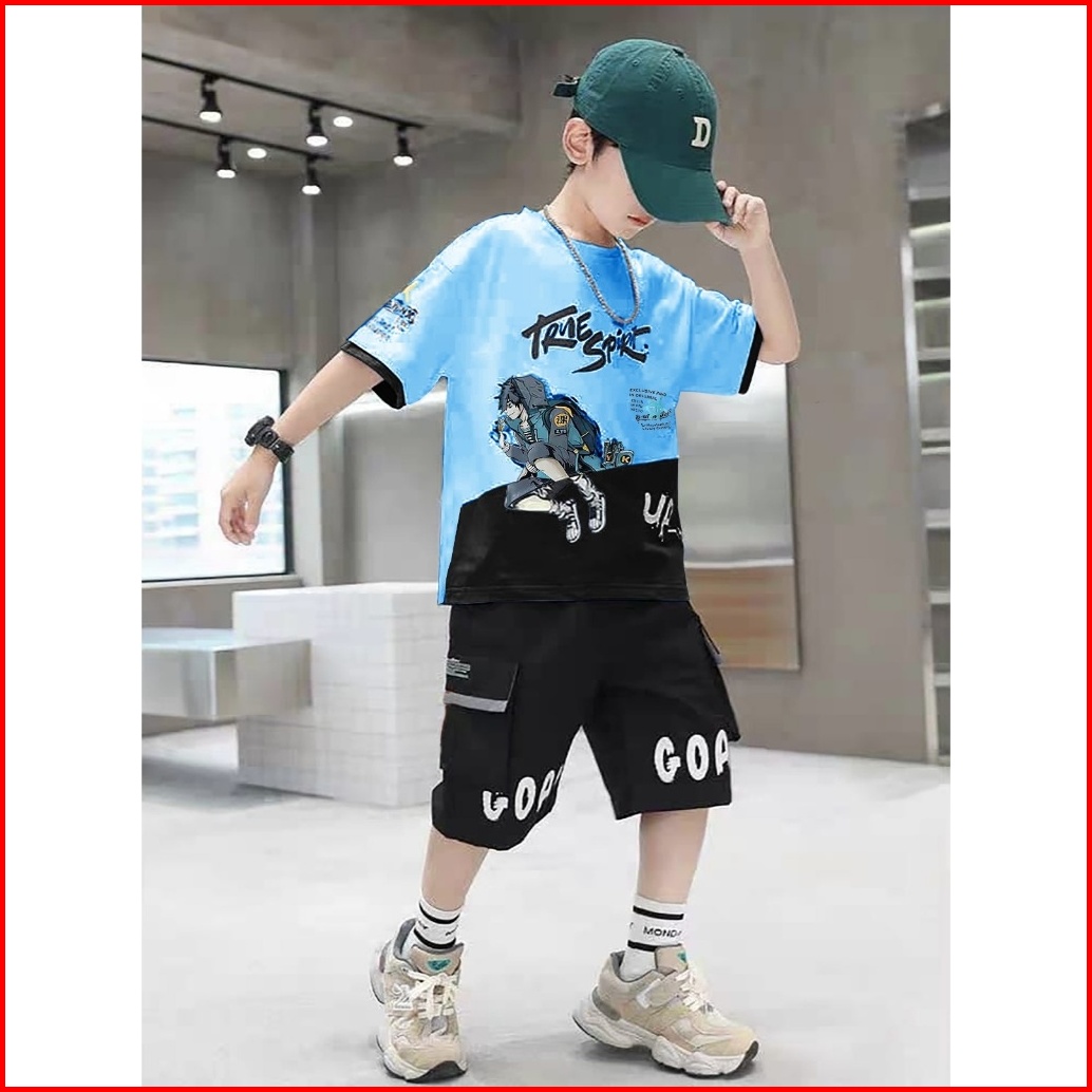 Setelan Baju Anak Satu Set Kaos Spirit Dan Celana Pendek Casual Stylish Fashionable