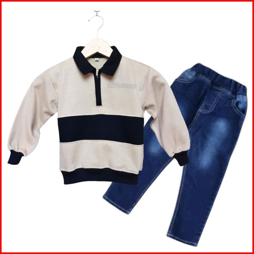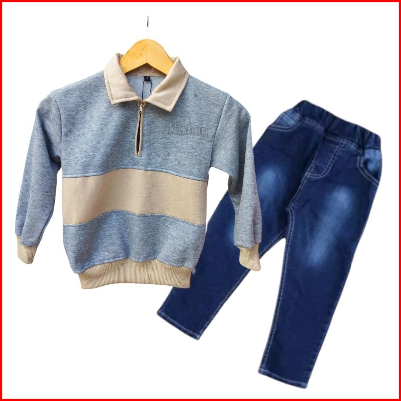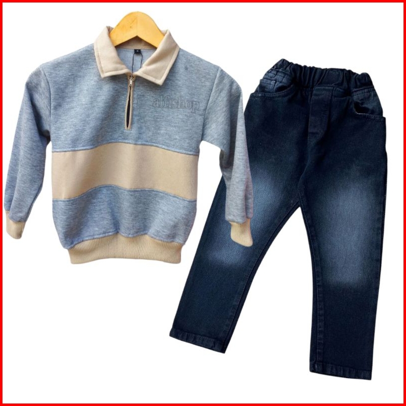 Setelan Anak Laki Laki Switer Kerah Rugby Dan Celana Jeans Olnevy Untuk Anak 1-12thn