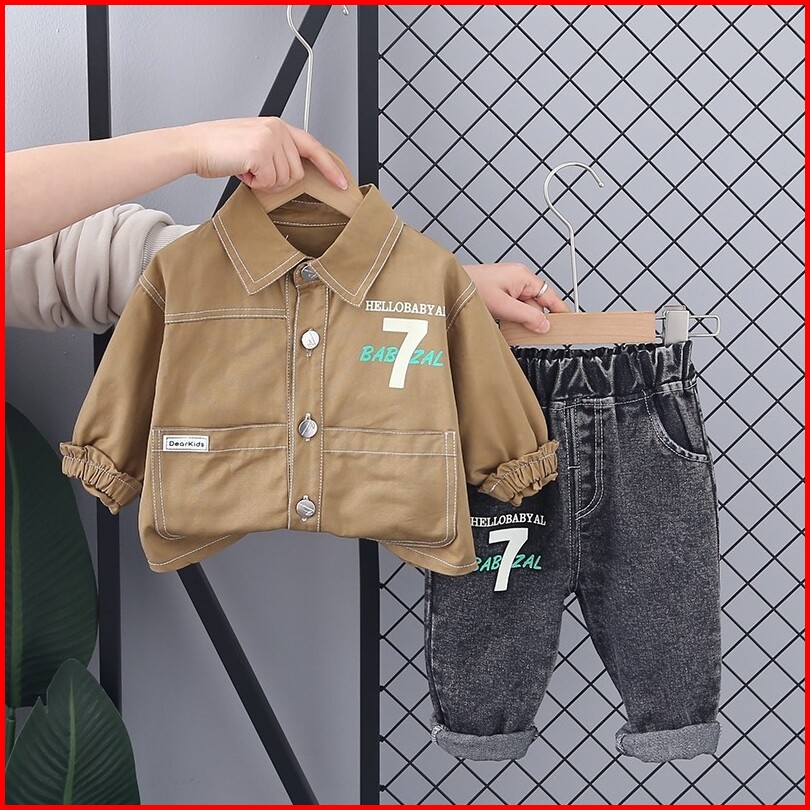 Setelan Kemeja Anak Laki Laki Import Setelan Kemeja Lengan Panjang Model Denim Dengan Angka 7 Besar Impor Setelan 2pcs K
