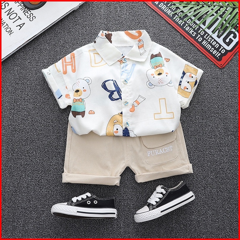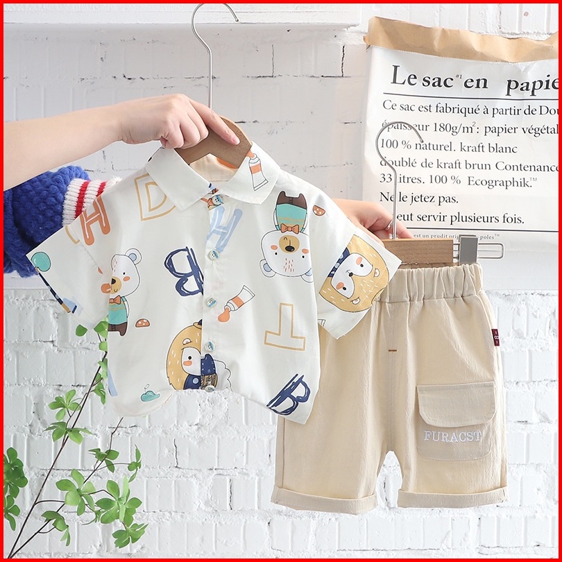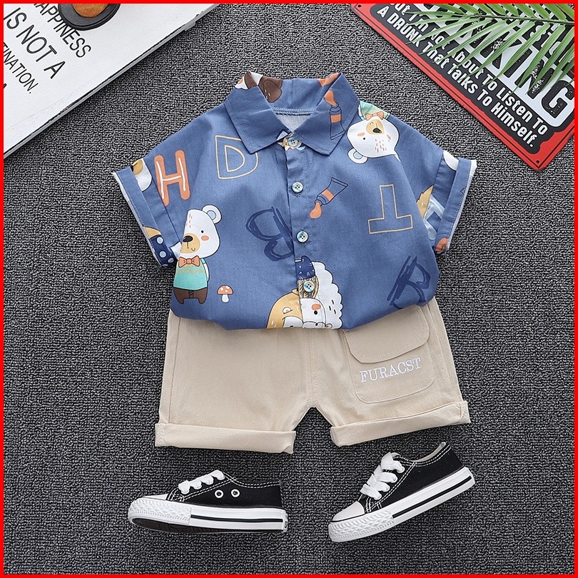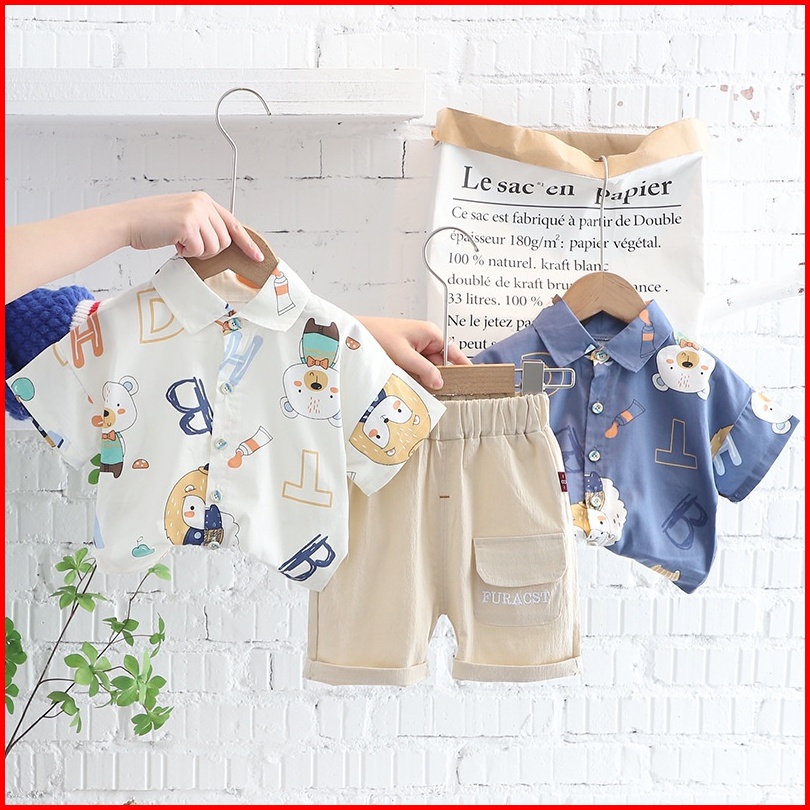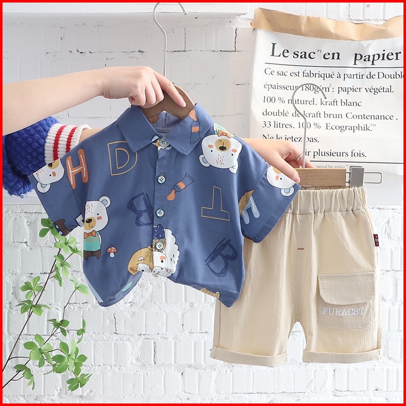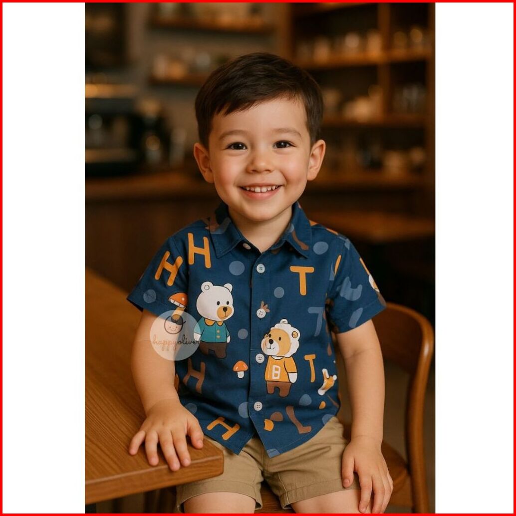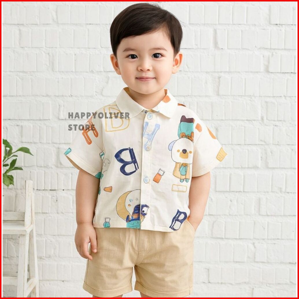 Promo 9.9 Happyoliver Set Beboo Ebv Setelan Bayi Laki-laki Lengan Pendek Setalan Kemeja Anak Lucu Gemoy Usia 1-3 Tahun S