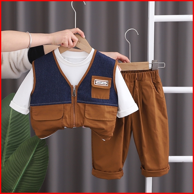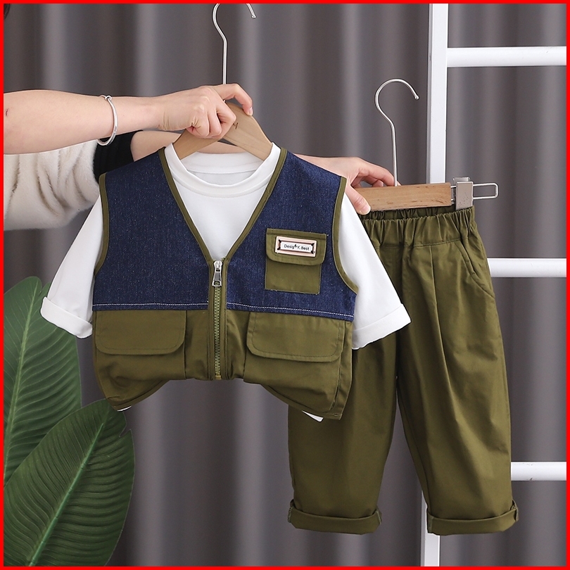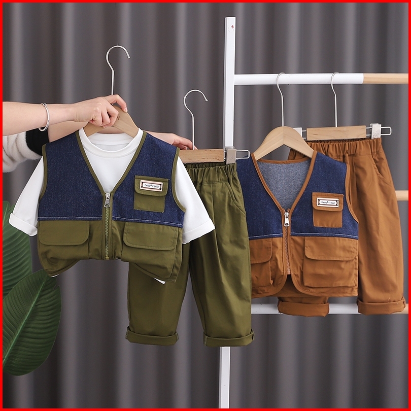 Setelan Kaos Anak Laki Laki Import Stelan Rompi Model 3 Kantong Anak Cowok Impor Setelan 3pcs Rompi Dengan Kaos Lengan P