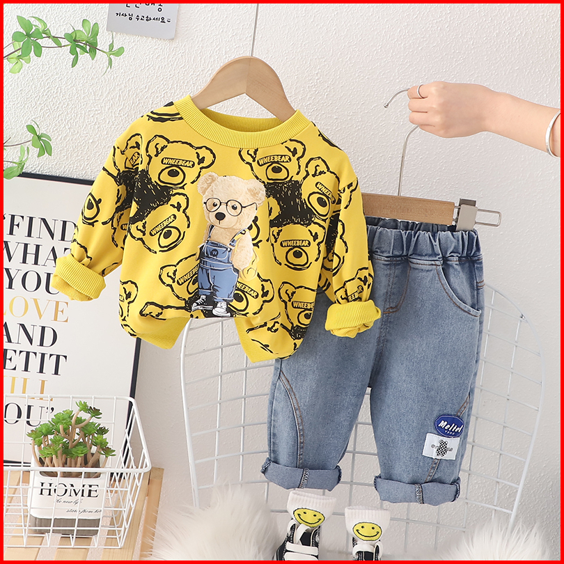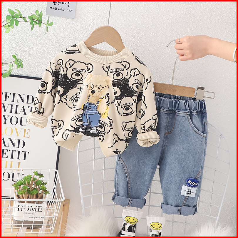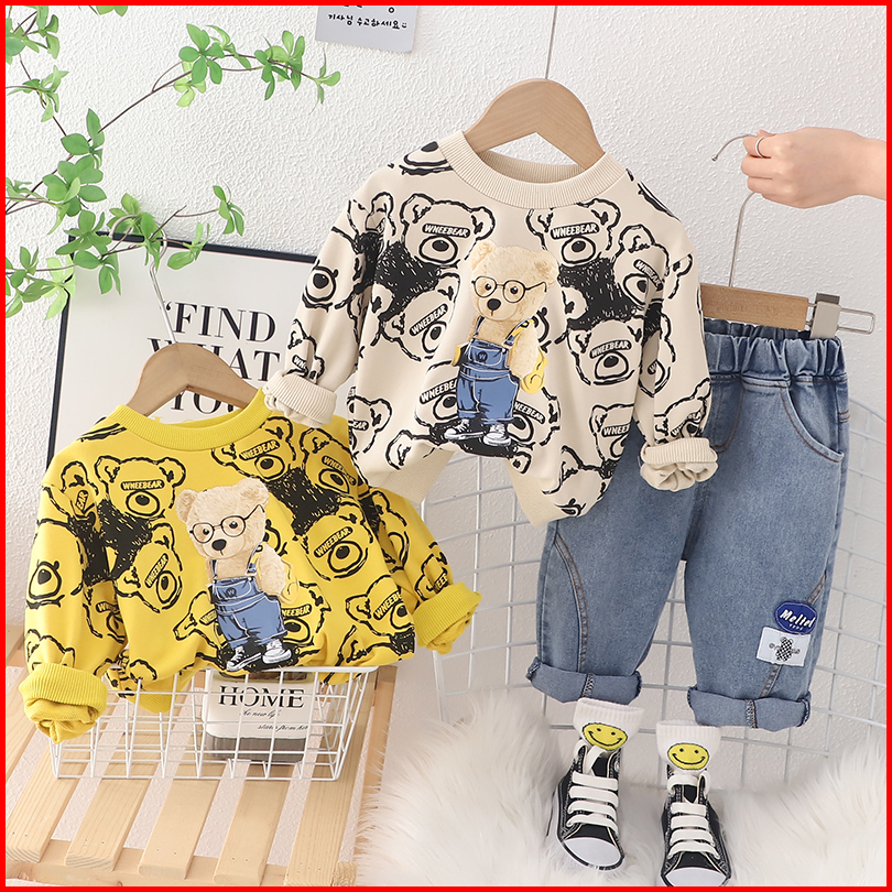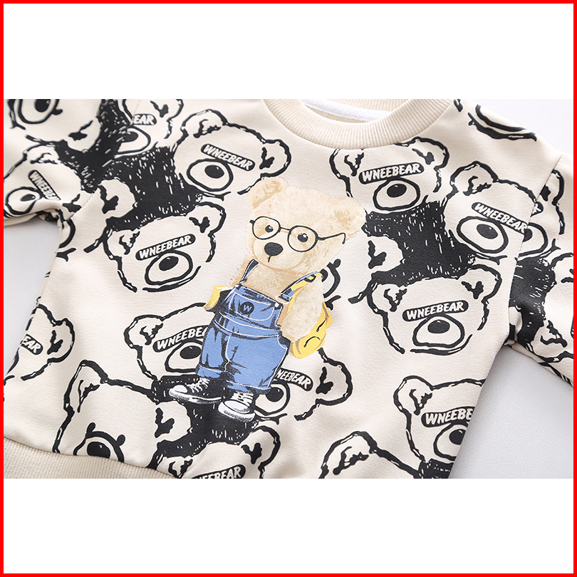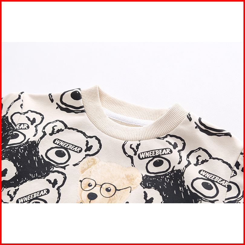 Setelan Sweater Anak Laki Laki Import Sweater Motif Beruang Anak Balita Impor Stelan 2pcs Sweater Motif Beruang Kacamata