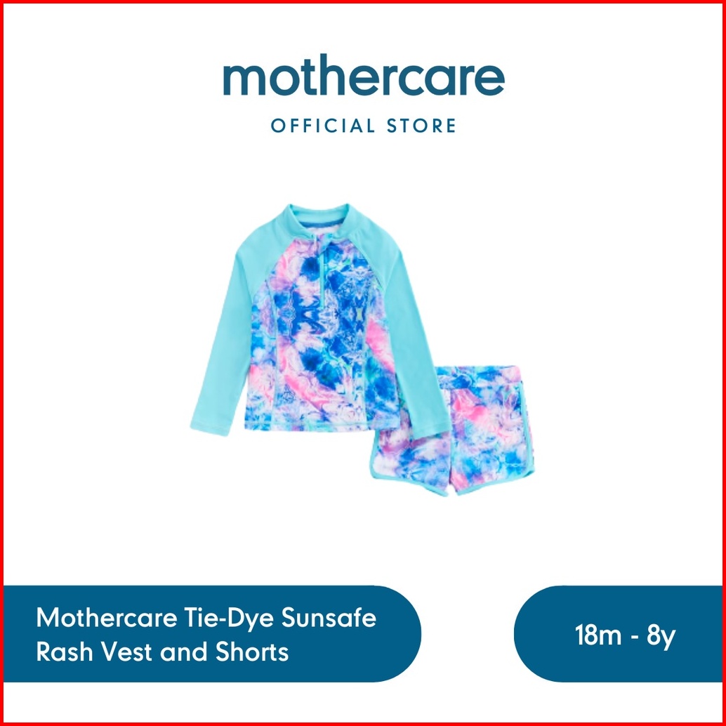 Mothercare Tie-dye Sunsafe Rash Vest And Shorts - Pakaian Renang Anak Perempuan Biru