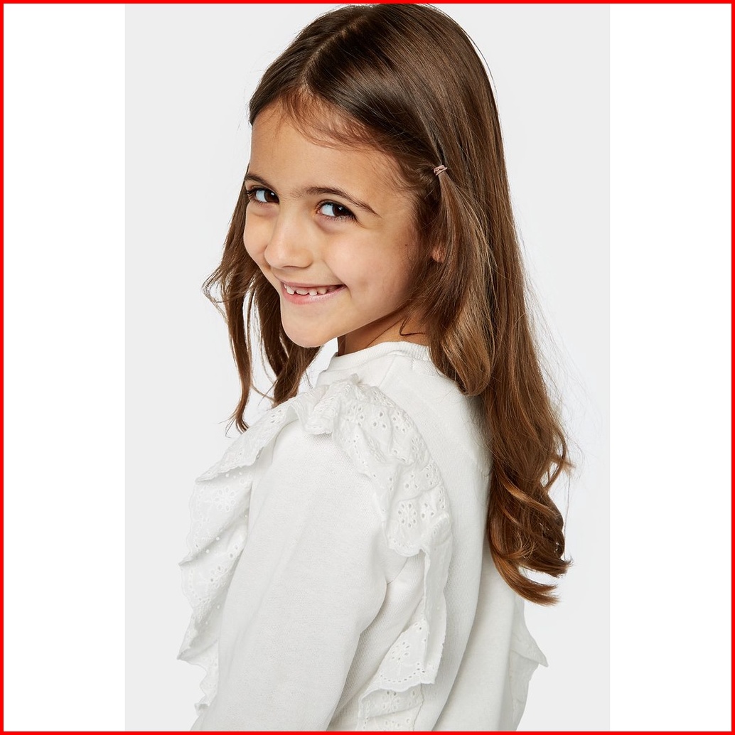 Mothercare Sweat Top With Broderie Frills - Sweater Anak Perempuan Putih