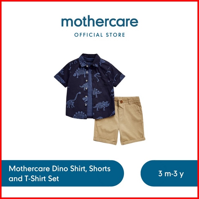 Mothercare Dino Shirt Shorts And T-shirt Set - Set Pakaian Bayi Laki-laki Multicolor