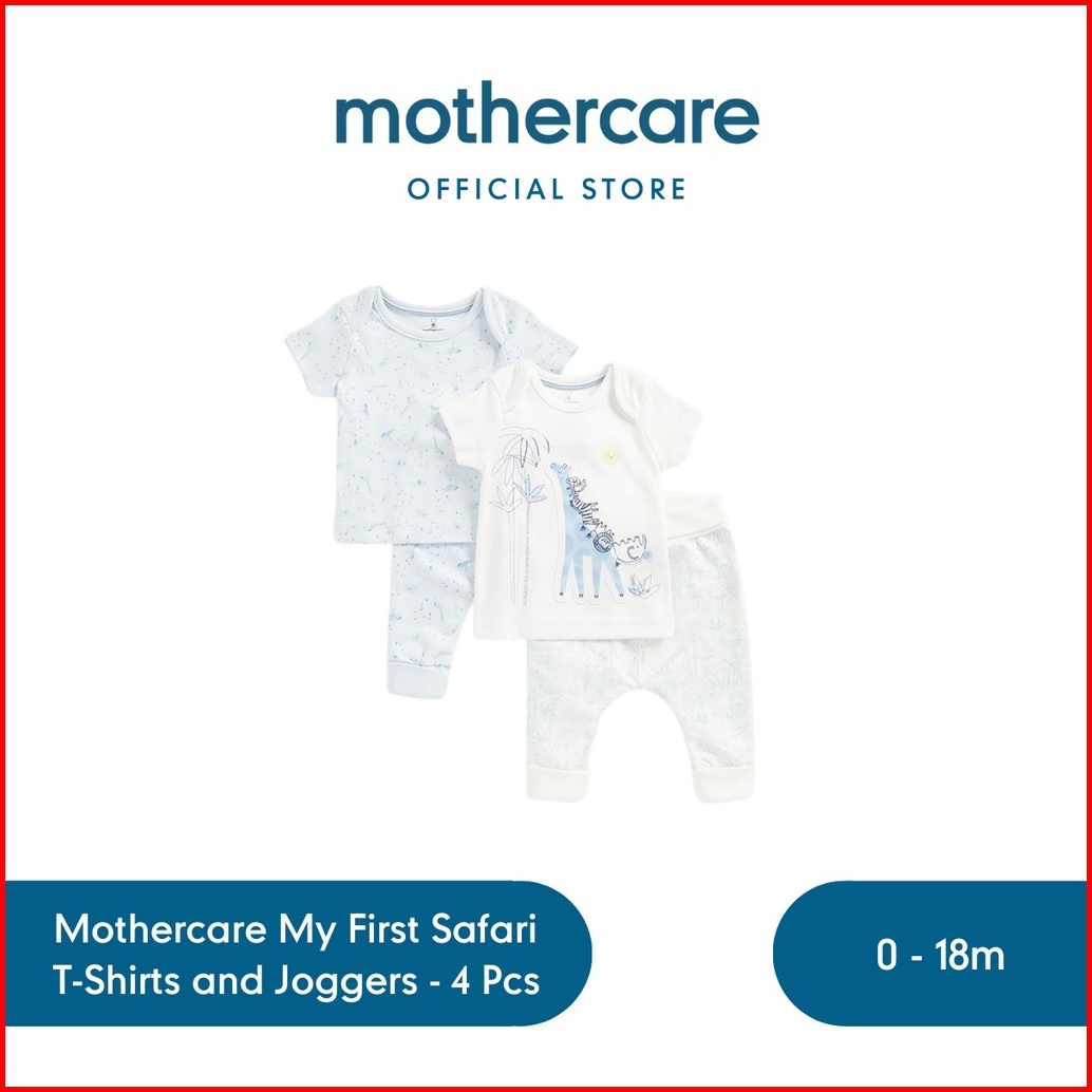 Mothercare My First Safari T-shirts And Joggers - 4 Piece - Set Pakaian Bayi Laki-laki Biru