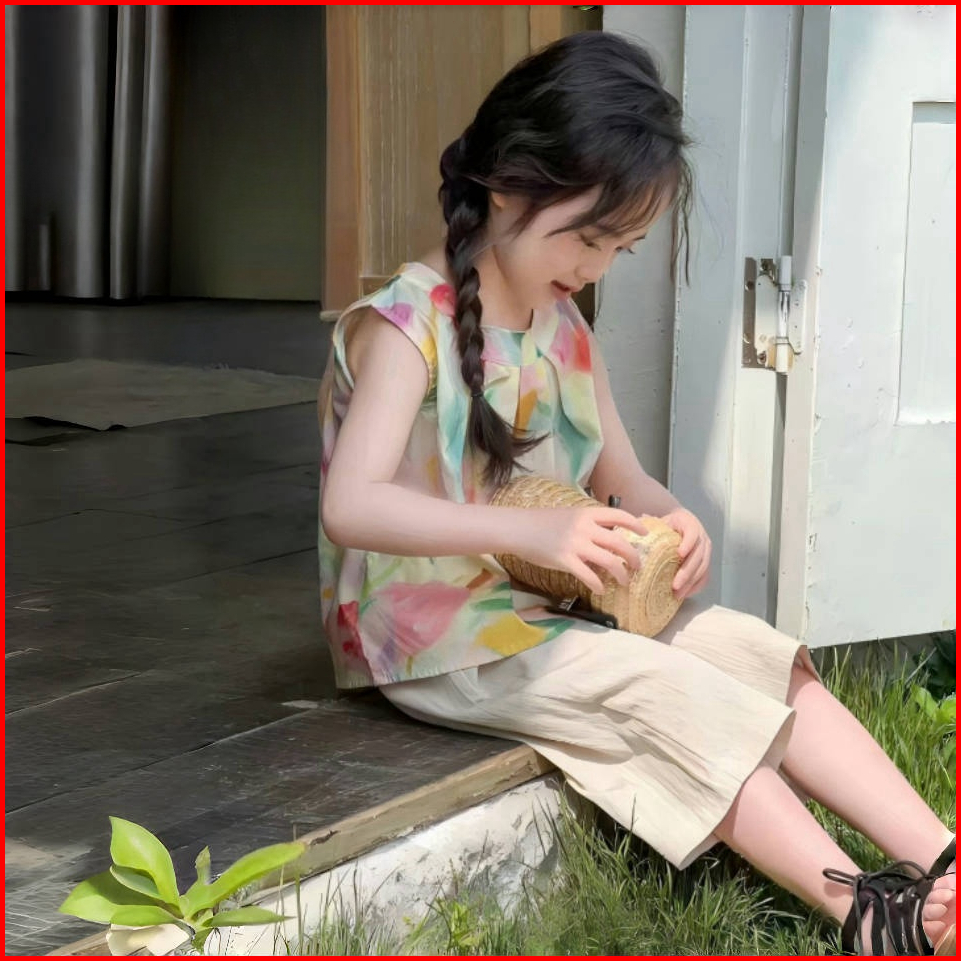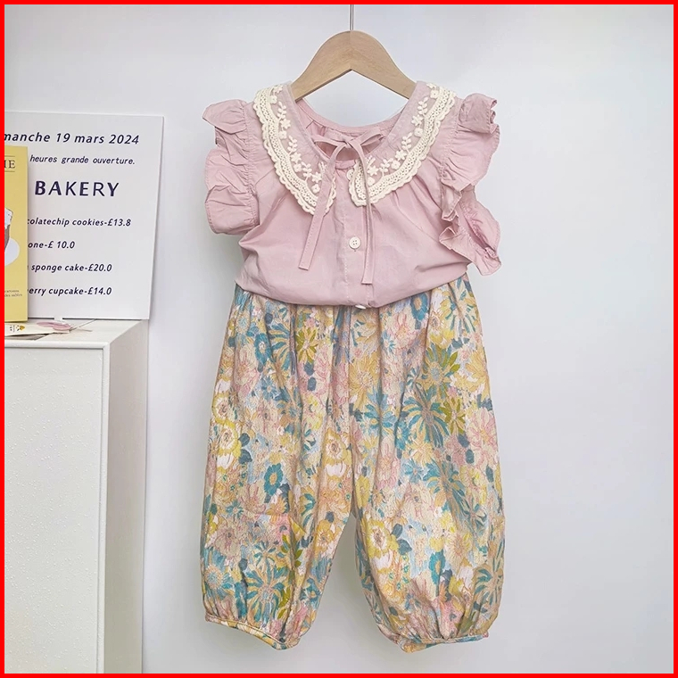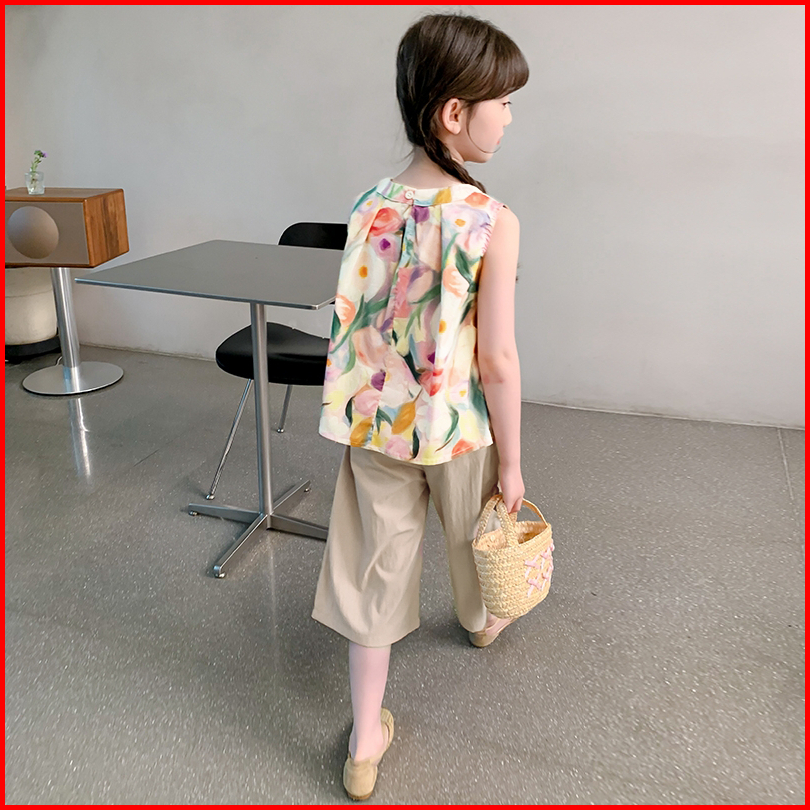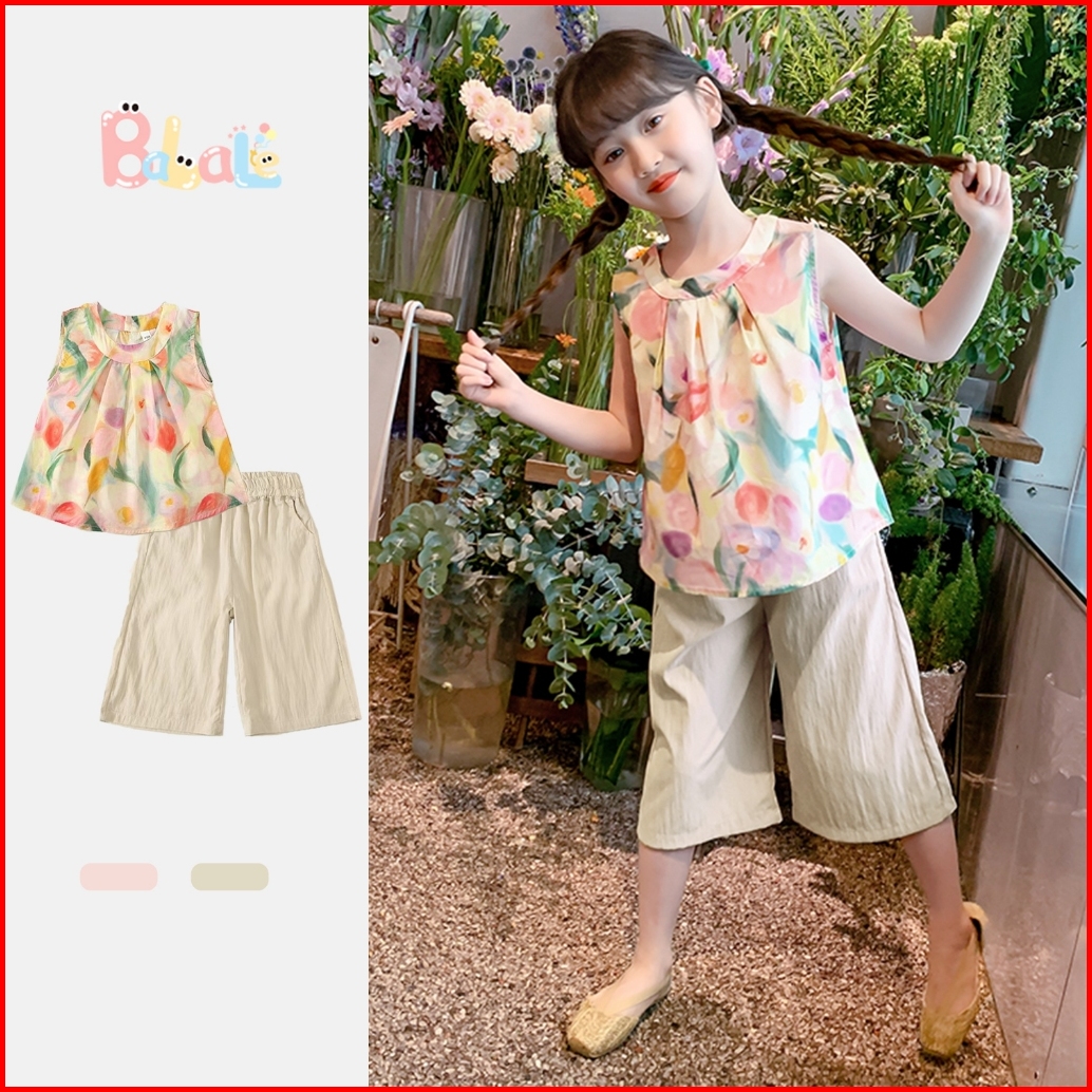 Balale Setelan Anak Perempuan Atasan Tanpa Lengan Motif Bunga Celana 9 10