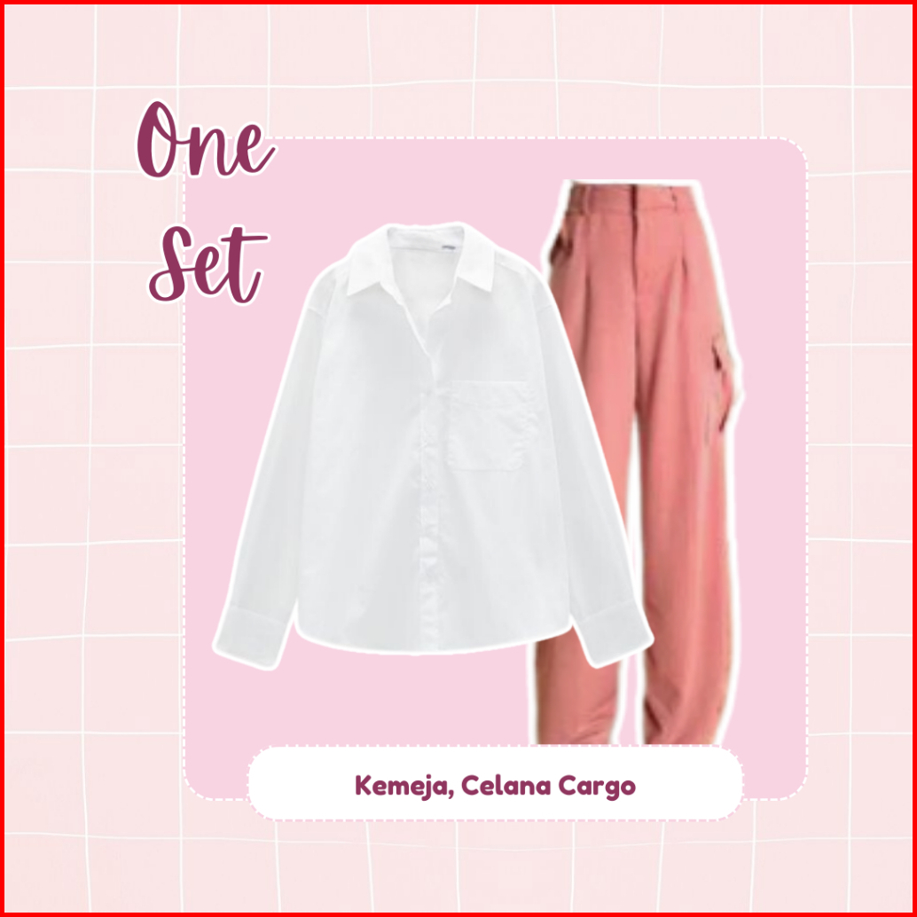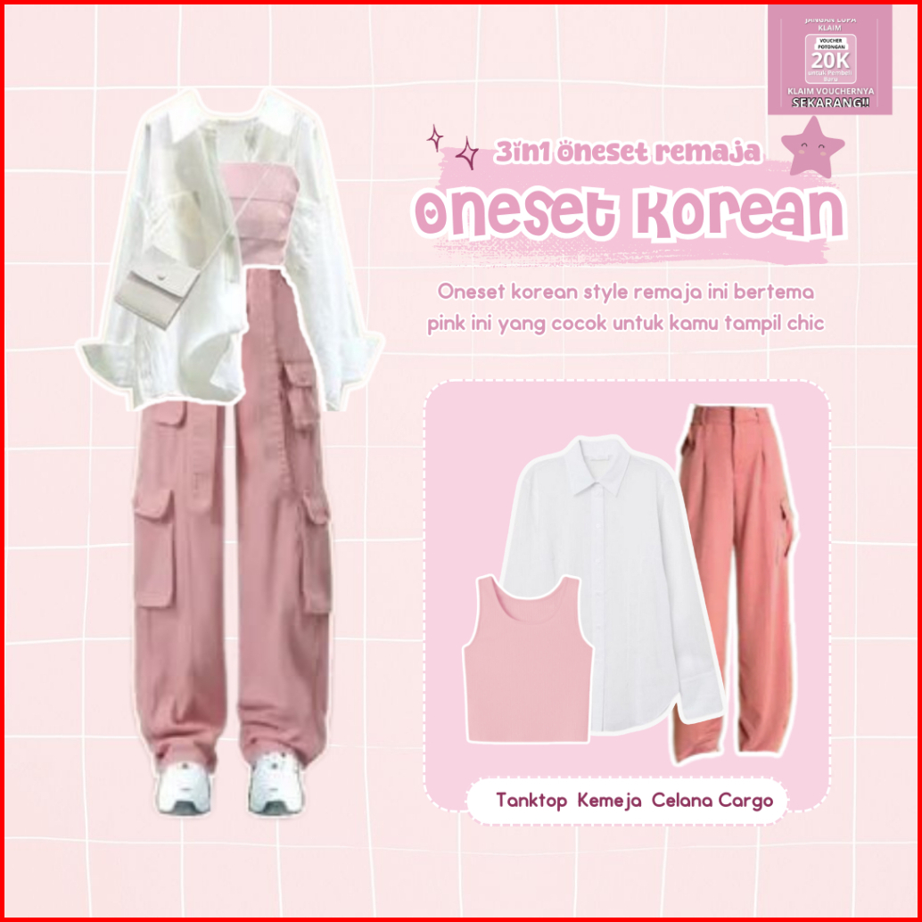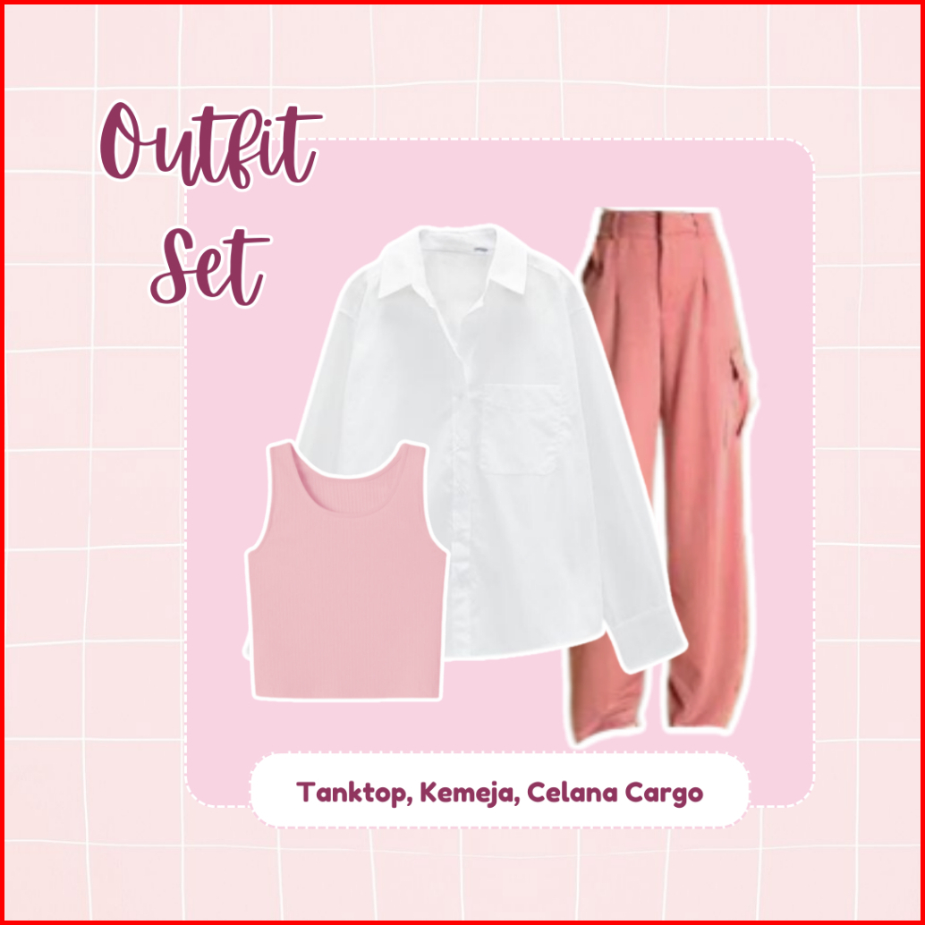 Outfit Cewek 1 Set Kemeja Tanktop Celana Cargo Baju Wanita Remaja Kekinian - Az26
