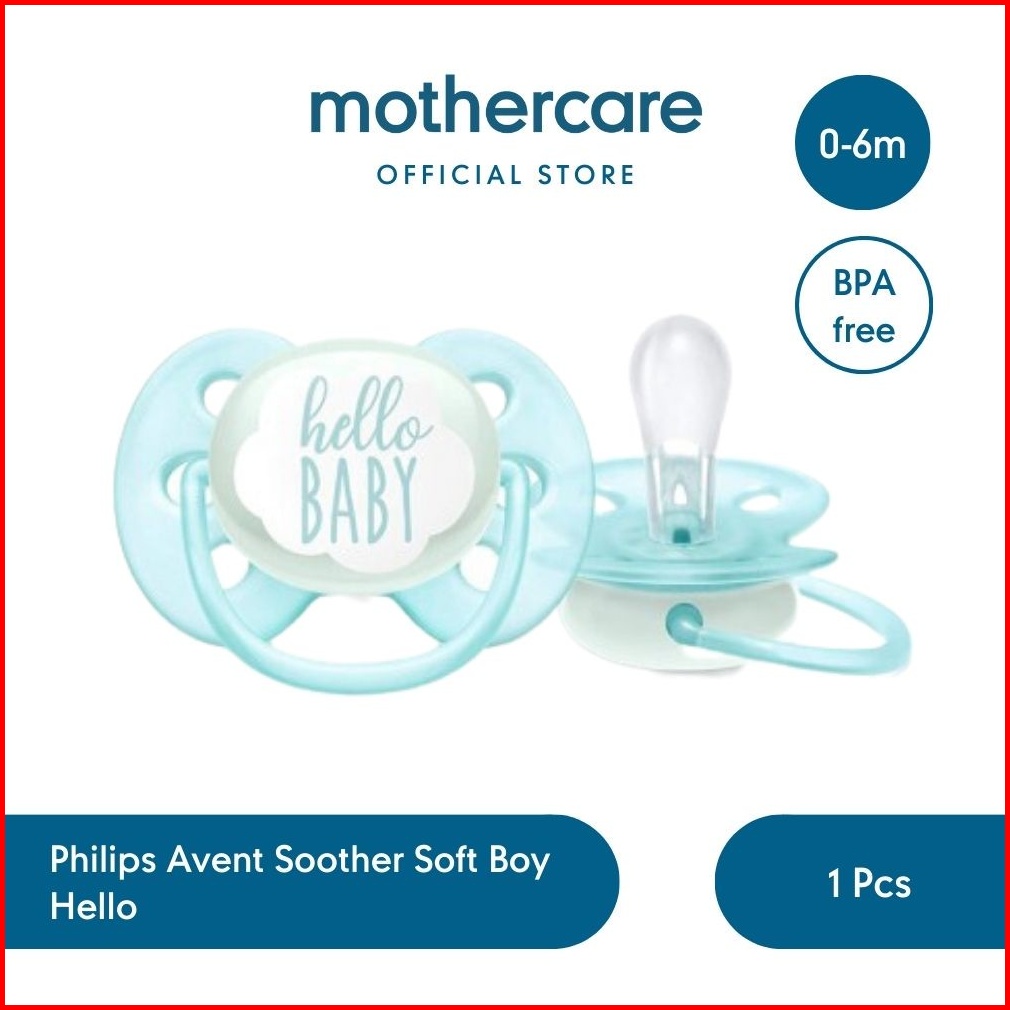 Philips Avent Soother Soft Boy Hello 0-6m - Empeng Bayi Biru