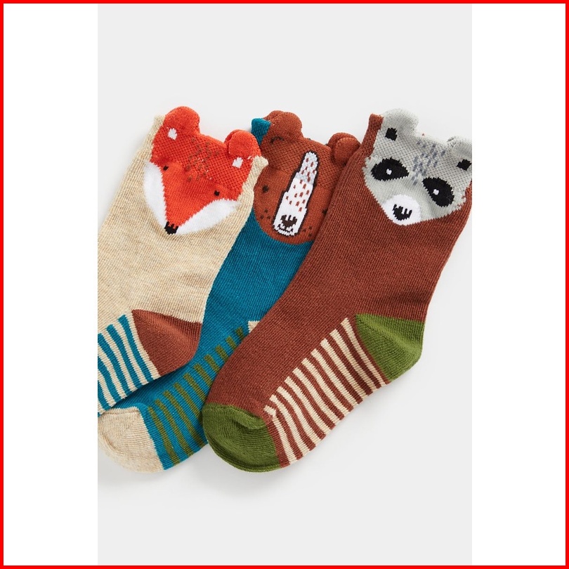 Mothercare Forest Faces Socks - 3 Pack - Kaos Kaki Laki-laki Multi