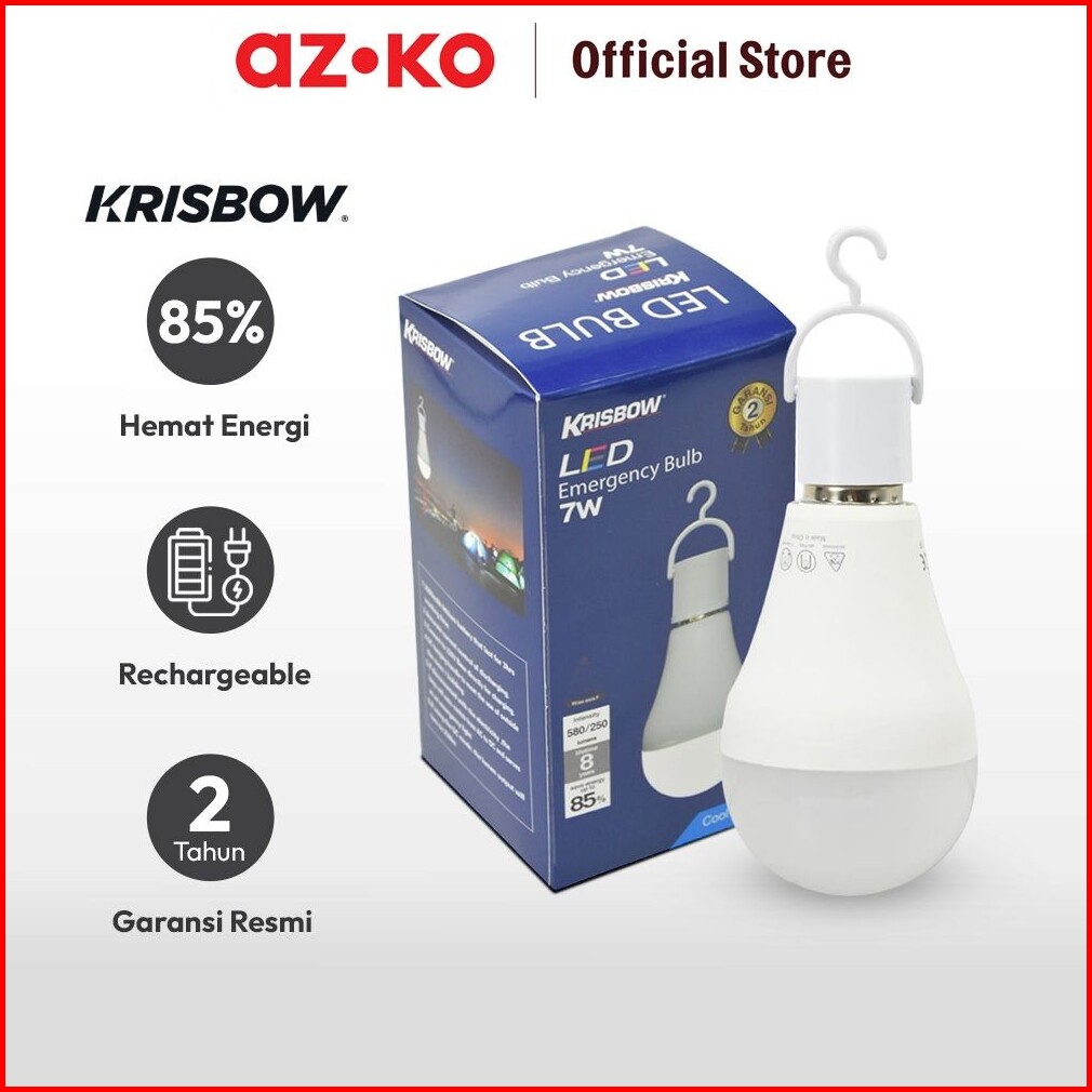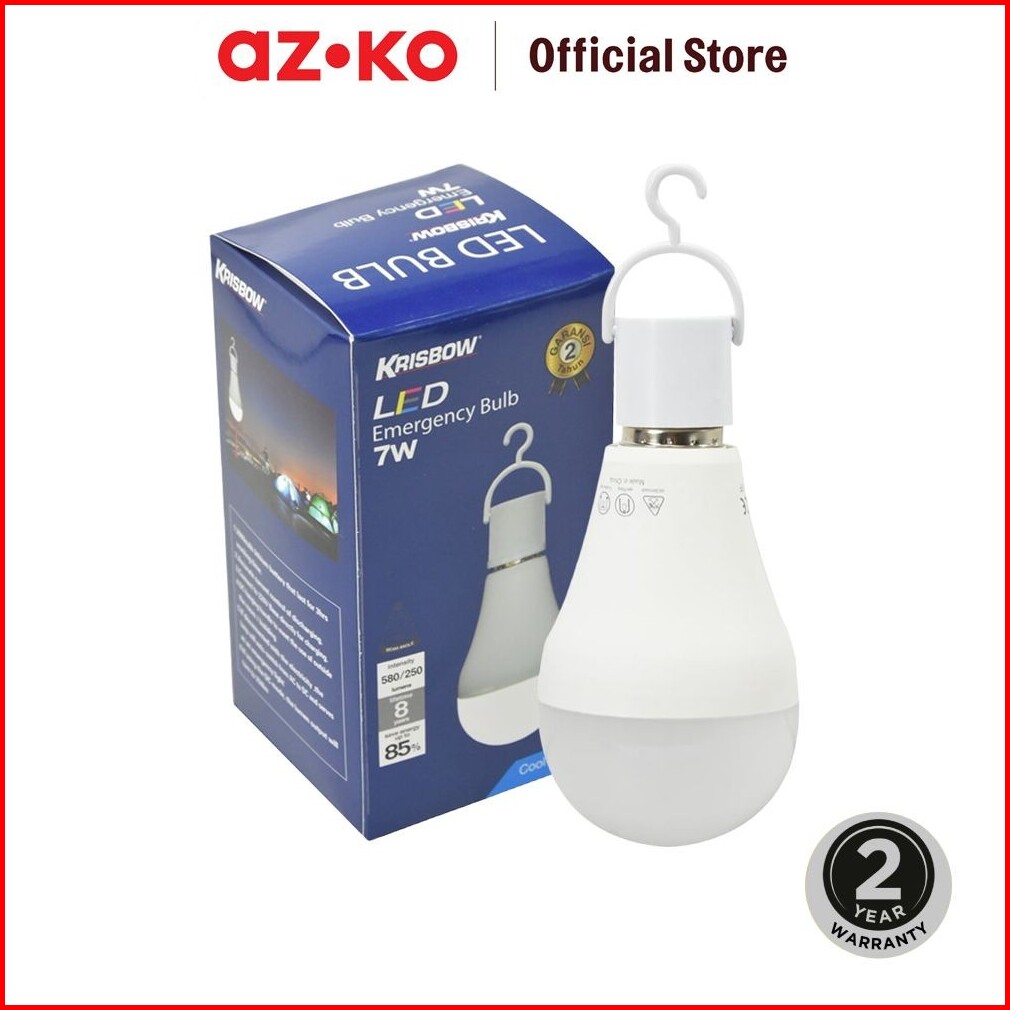 Azko Krisbow Lumi Bohlam Led Darurat 7 Watt Cool Daylight - Putih Bulb Lampu Indoor Outdoor Light Led Light Bolam