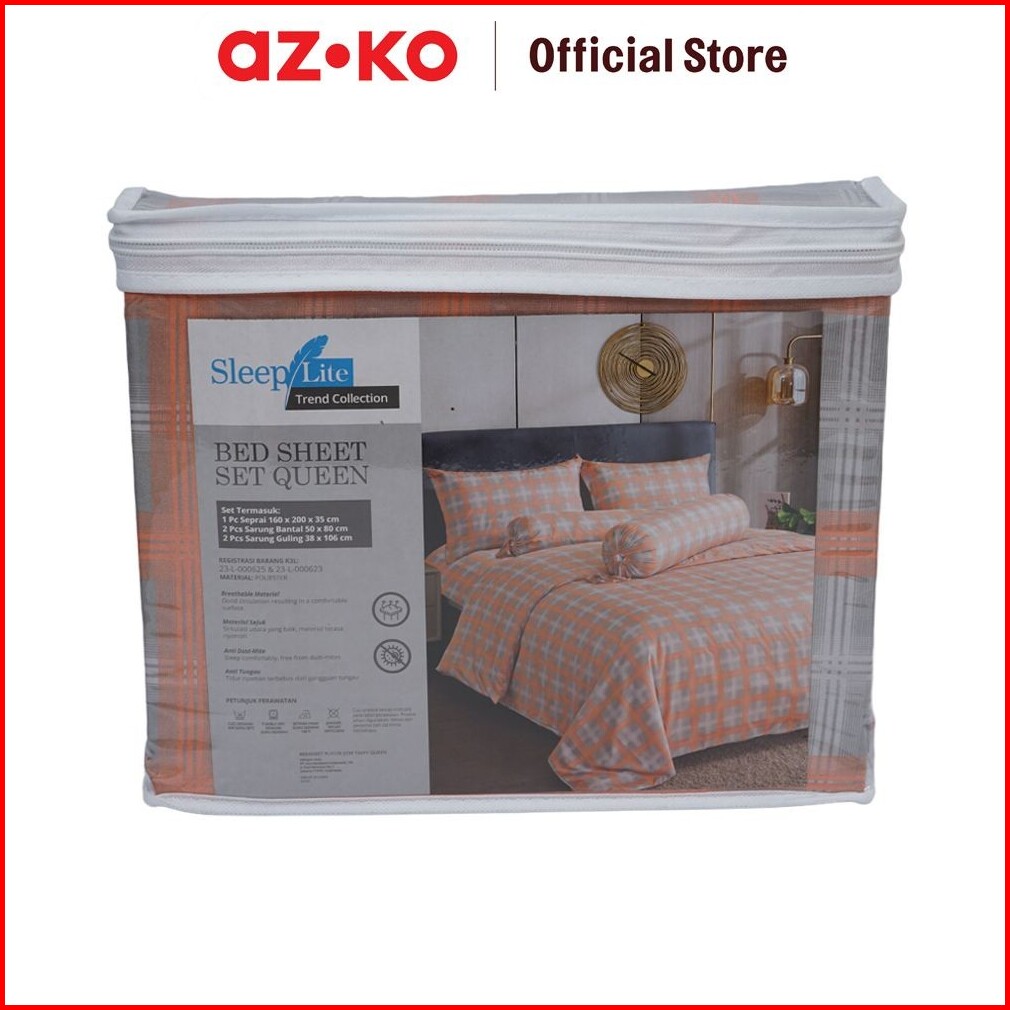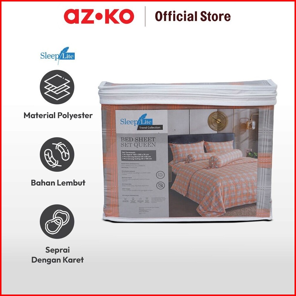 Azko Sleeplite 160x200 Cm Set 5 Pcs Seprai Queen Polyester Stripe Tafy Sprei Seprai Aesthetic Seprei Sheet Set Bed Sheet