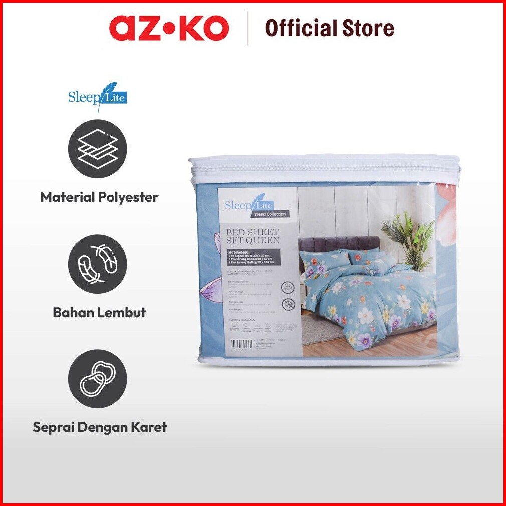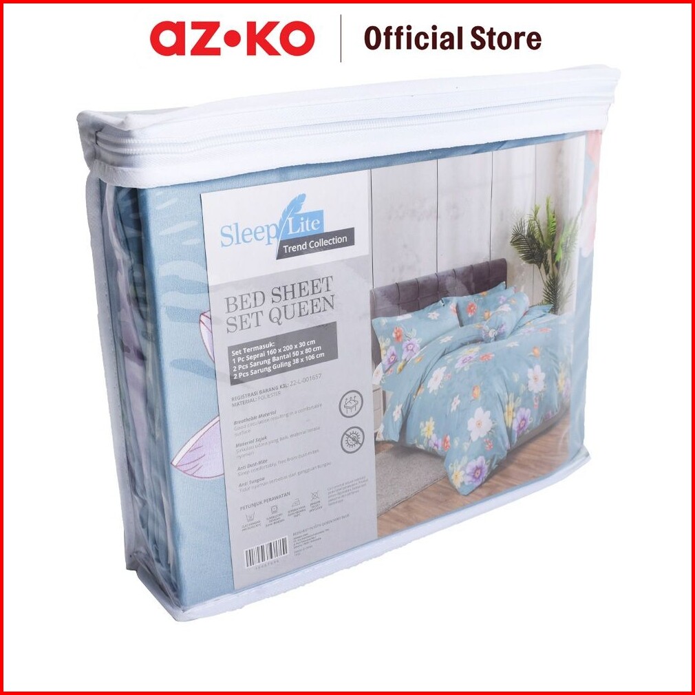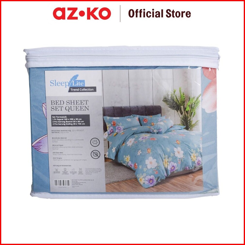 Azko Sleeplite 160x200 Cm Set 5 Pcs Seprai Queen Polyester Kirei - Biru Sprei Seprai Aesthetic Seprei Sheet Set Bed Shee