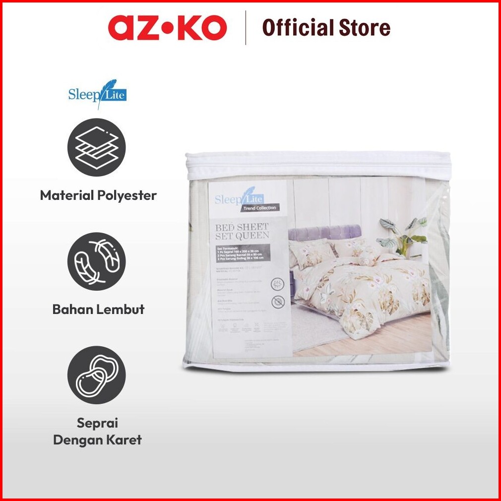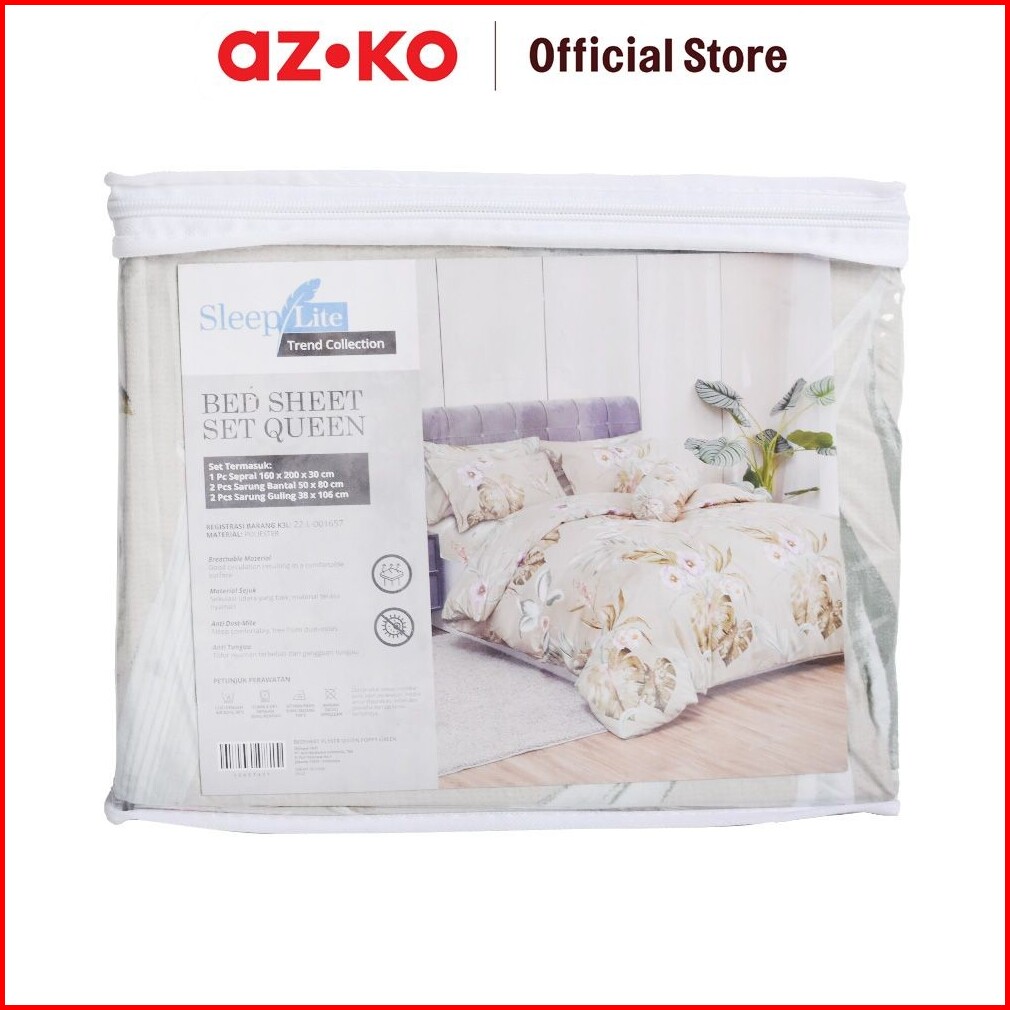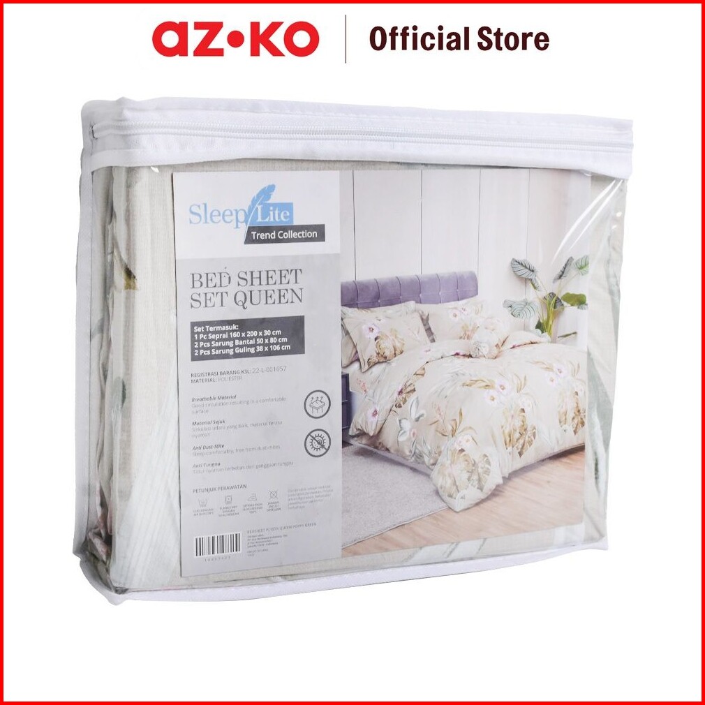 Azko Sleeplite 160x200 Cm Set 5 Pcs Seprai Queen Polyester Poppy - Hijau Sprei Motif Seprai Aesthetic Seprei Sheet Set B