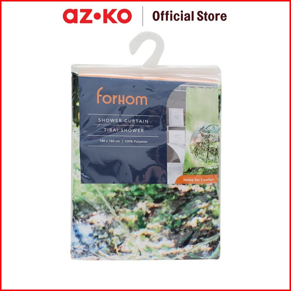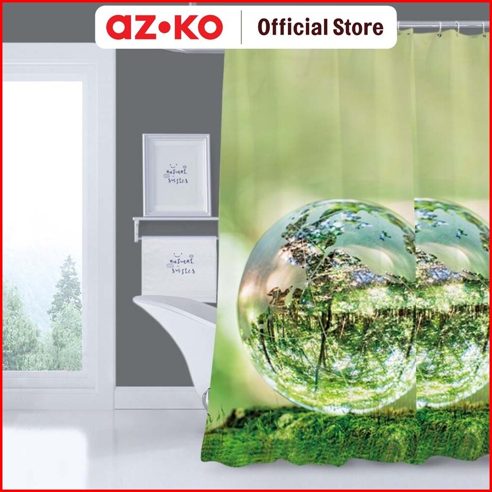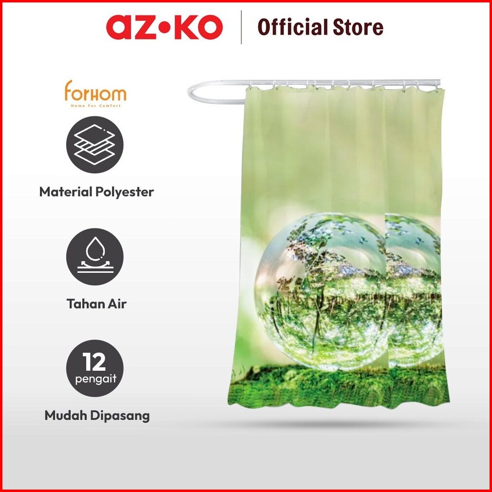 Azko Forhom 180x180 Cm Tirai Kamar Mandi Dengan Hooks Glassbal - Hijau Gorden Penutup Ruang Shower Curtain Shower Perlen