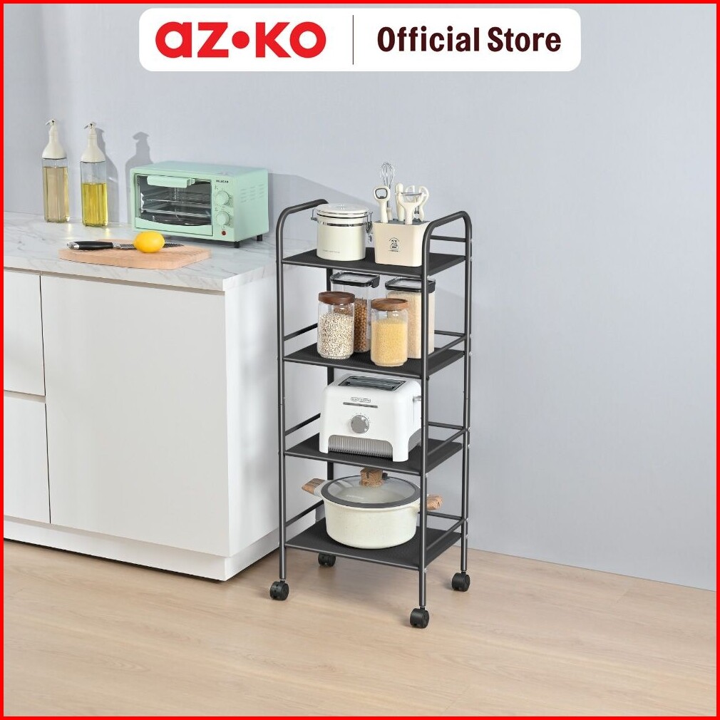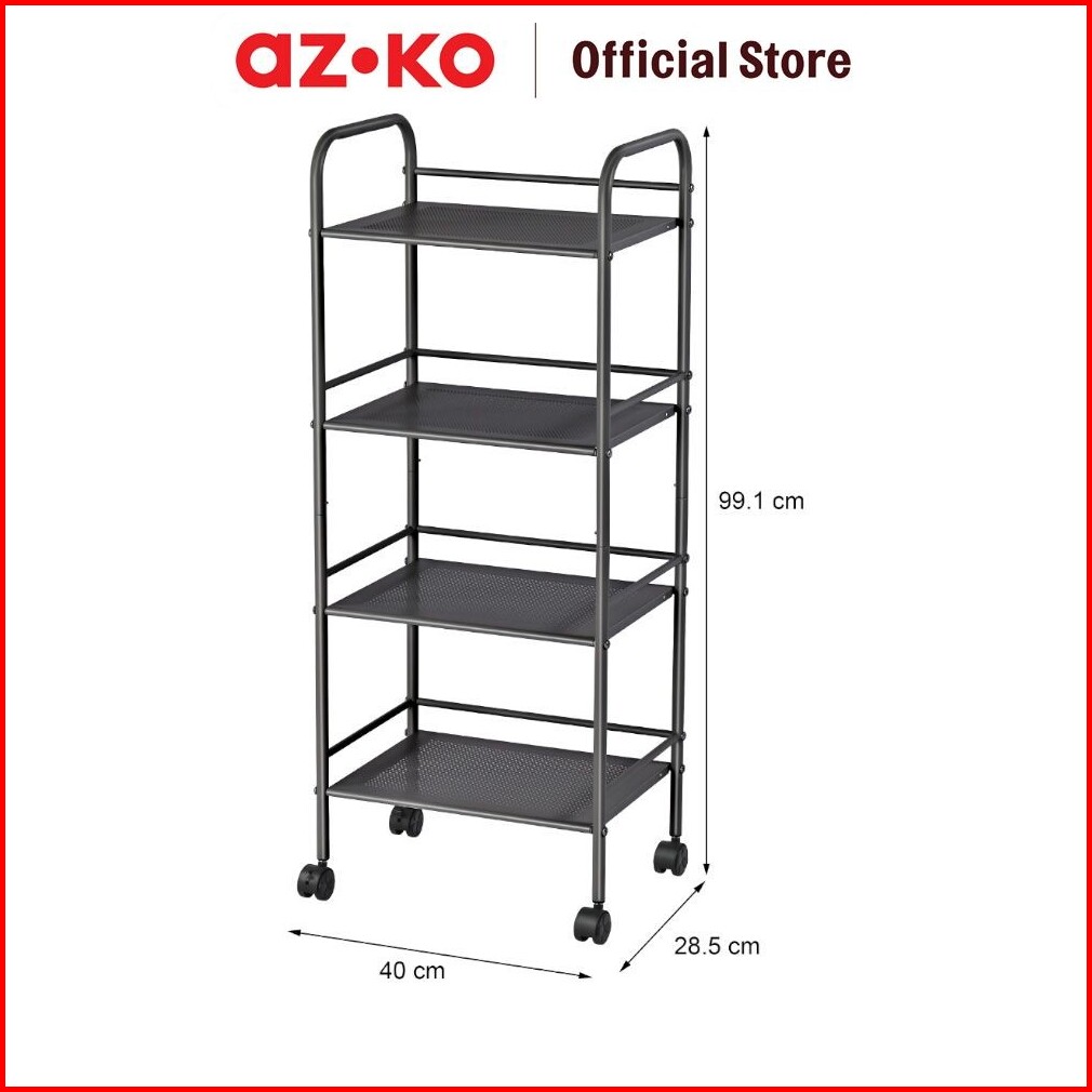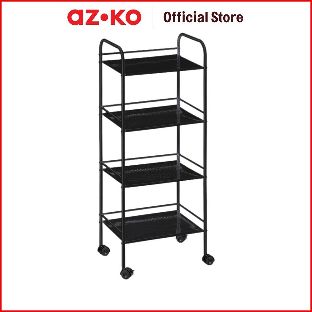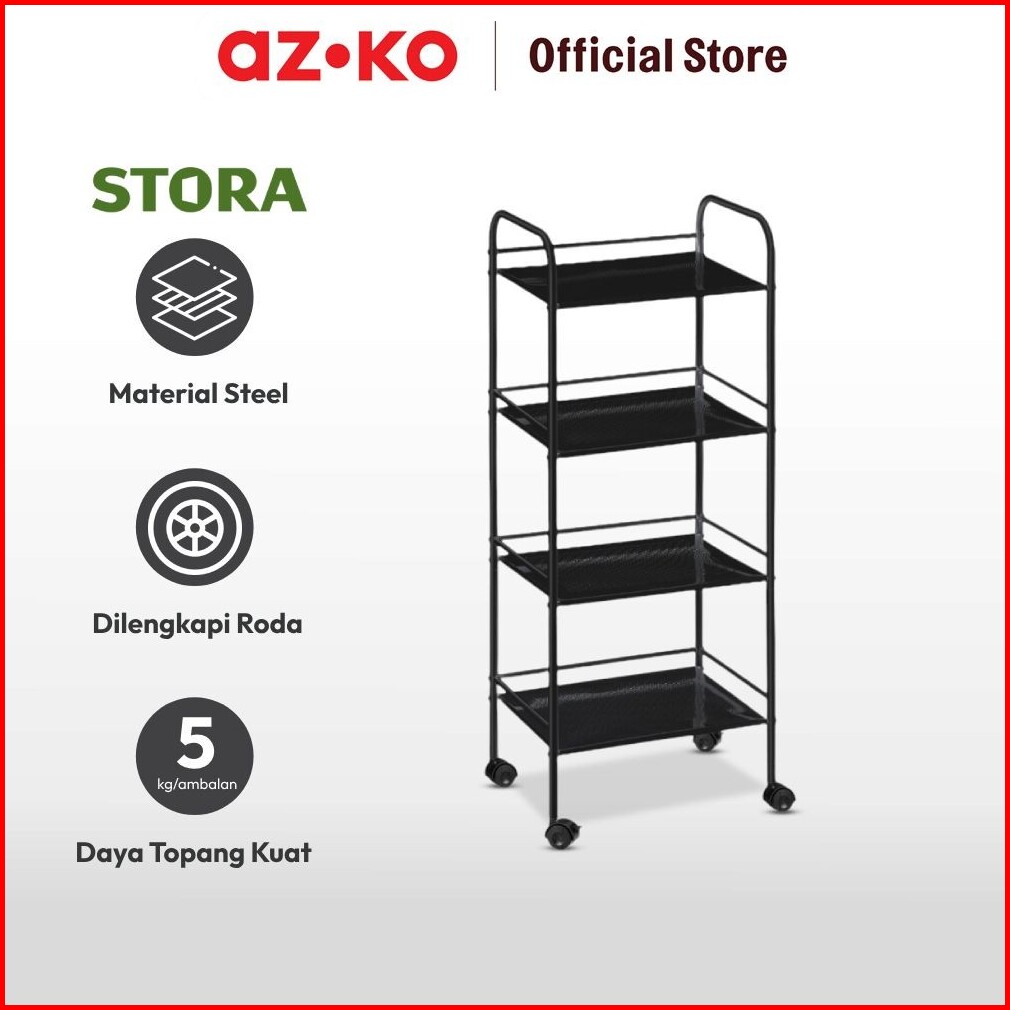 Azko Stora Lyra Rak Troli 4 Tingkat - Hitam Tempat Penyimpanan Multifungsi Dengan Roda Storage Trolley Wheels Rack Perle