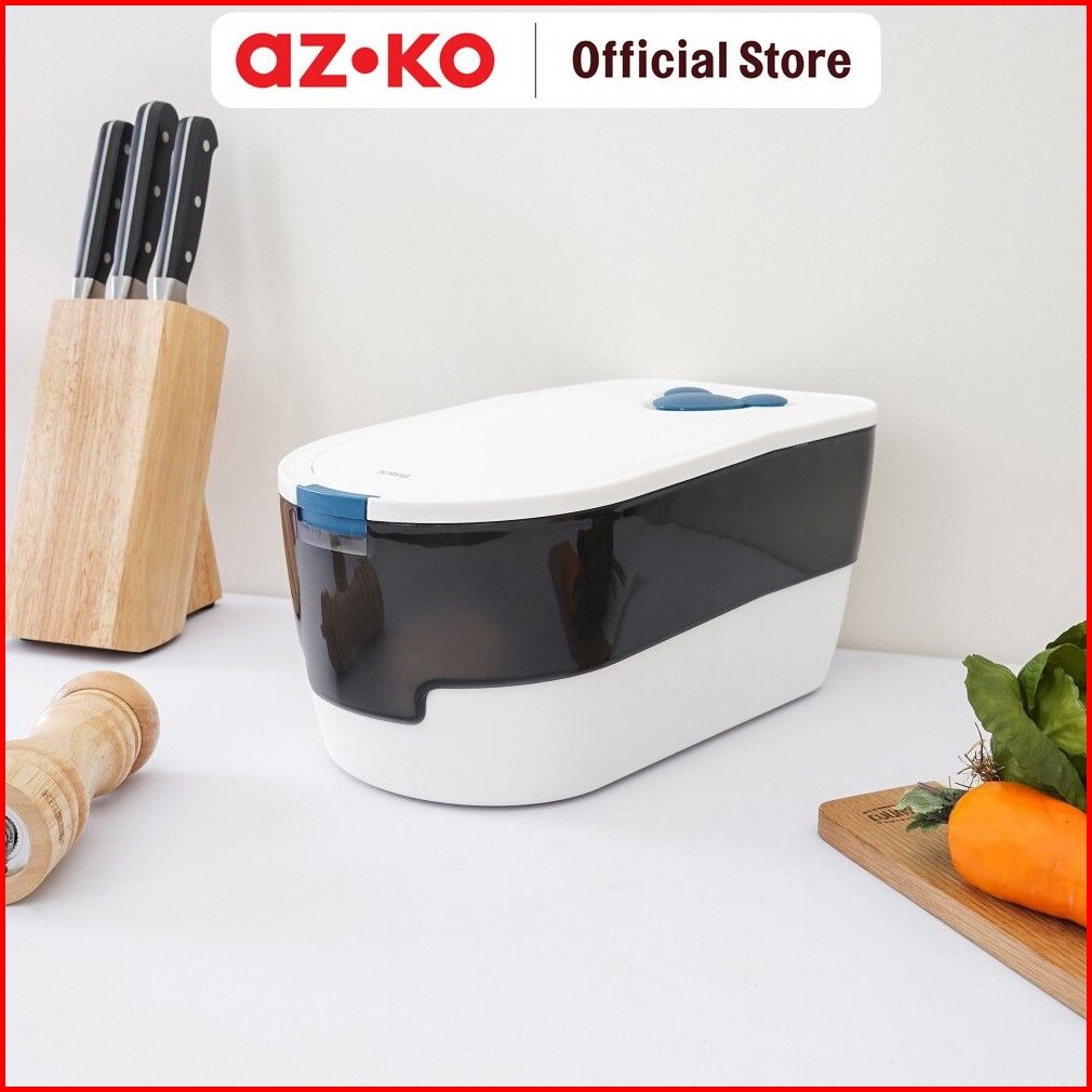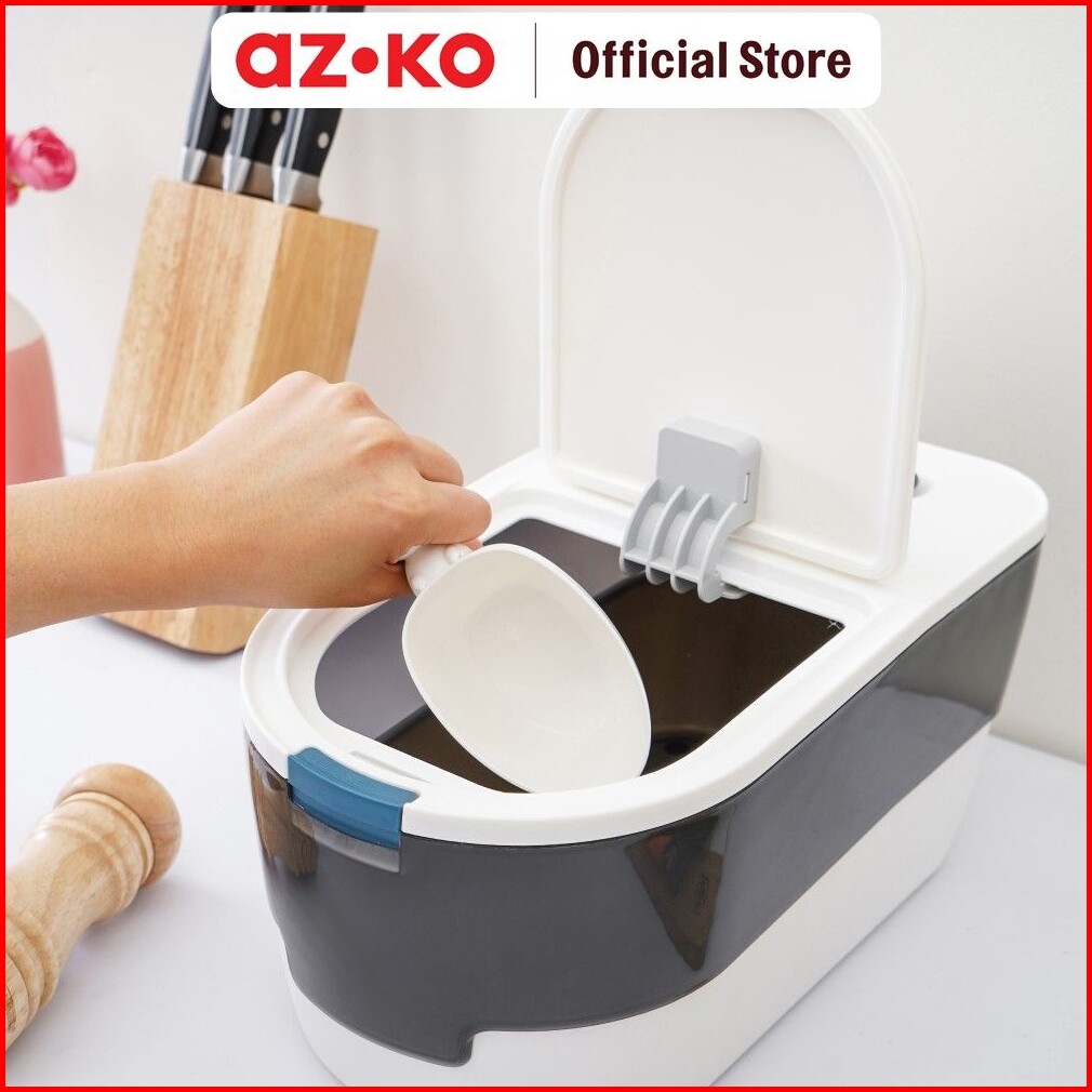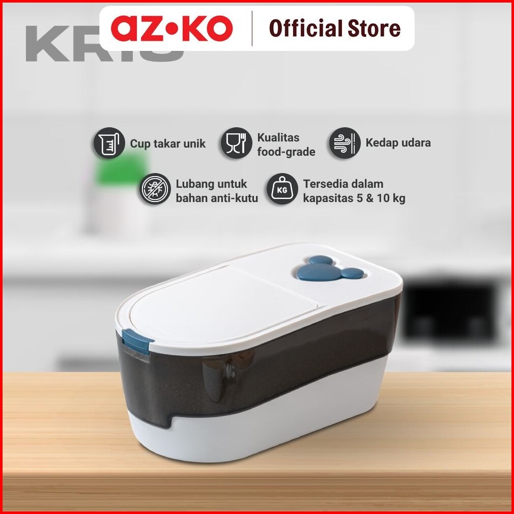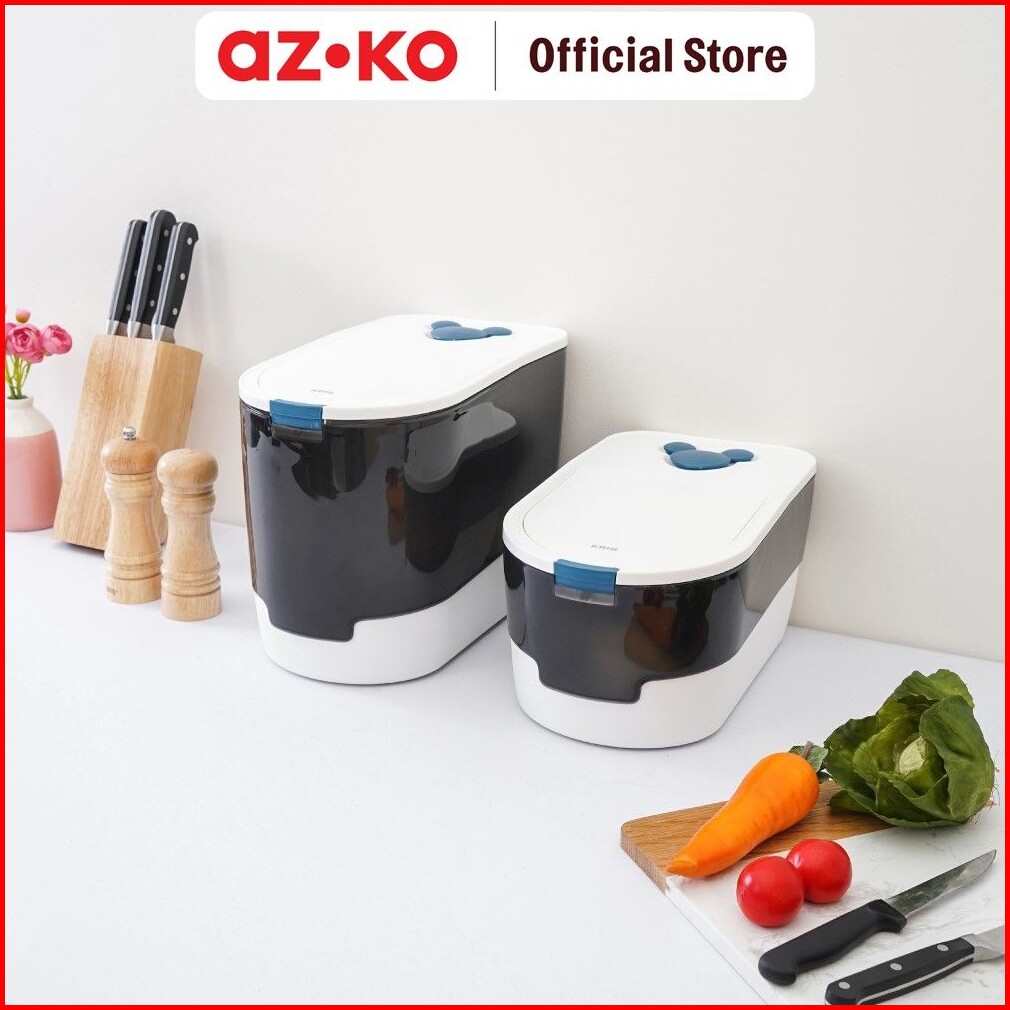 Azko Kris Tempat Beras 5 Kg - Hitam Putih Rice Container Food Grade Kotak Beras Wadah Penyimpanan Beras Perlengkapan Dap