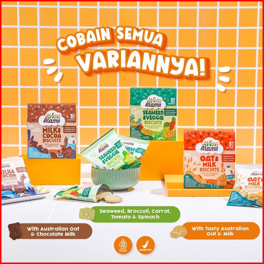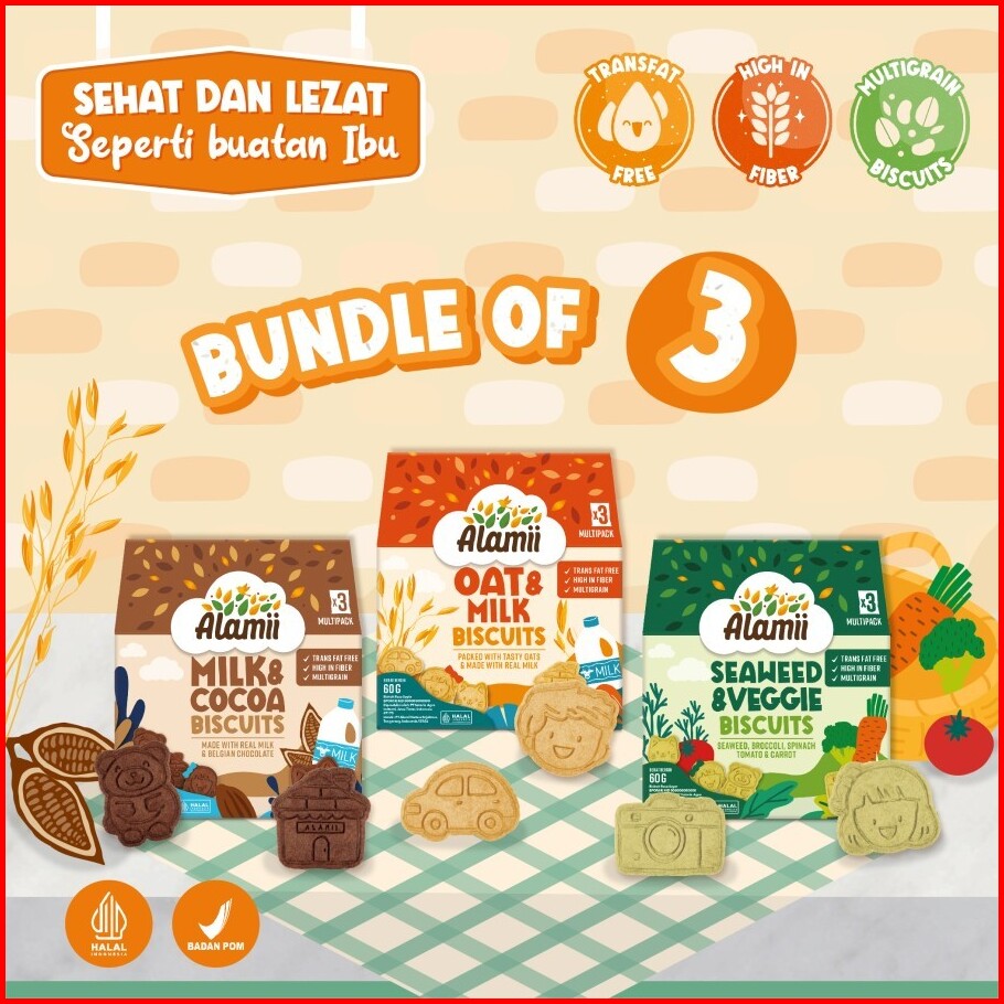 Alamii Multigrain Biscuits - Bundle Isi 3 X 60g 3 Packs X 20g Mix Varian Cemilan Sehat Bayi Anak