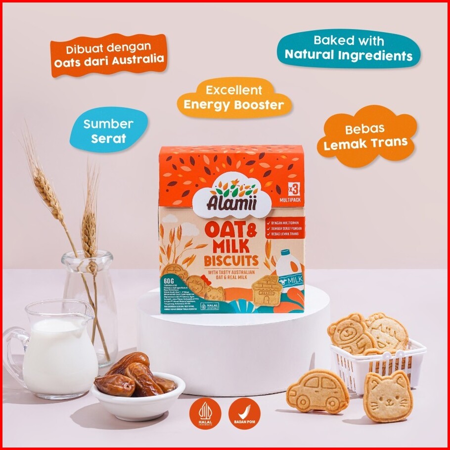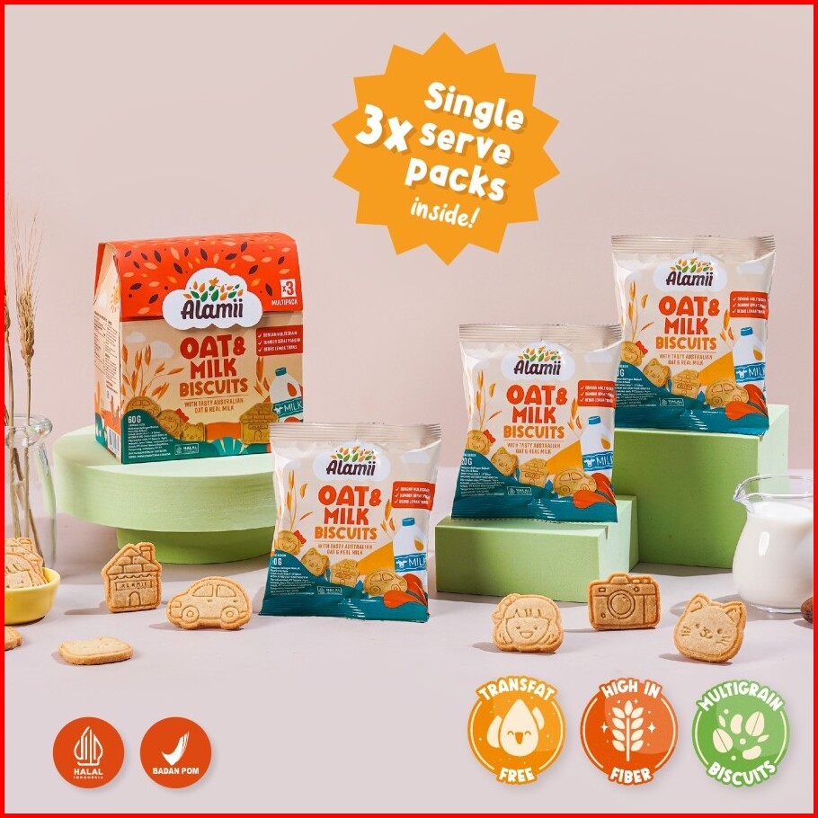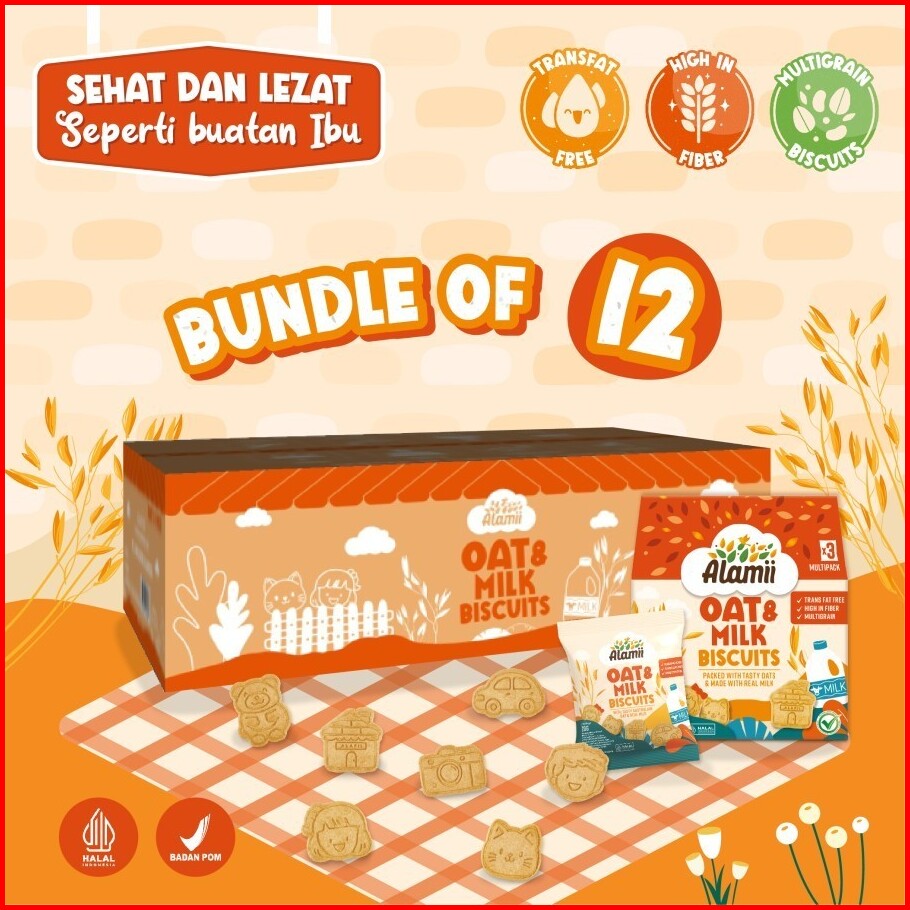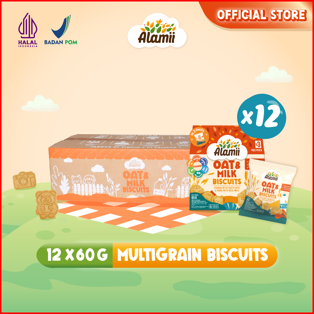 Alamii Multigrain Biscuits - Bundle Isi 12 X 60g 3 Packs X 20g Oat Milk Cemilan Sehat Bayi Anak