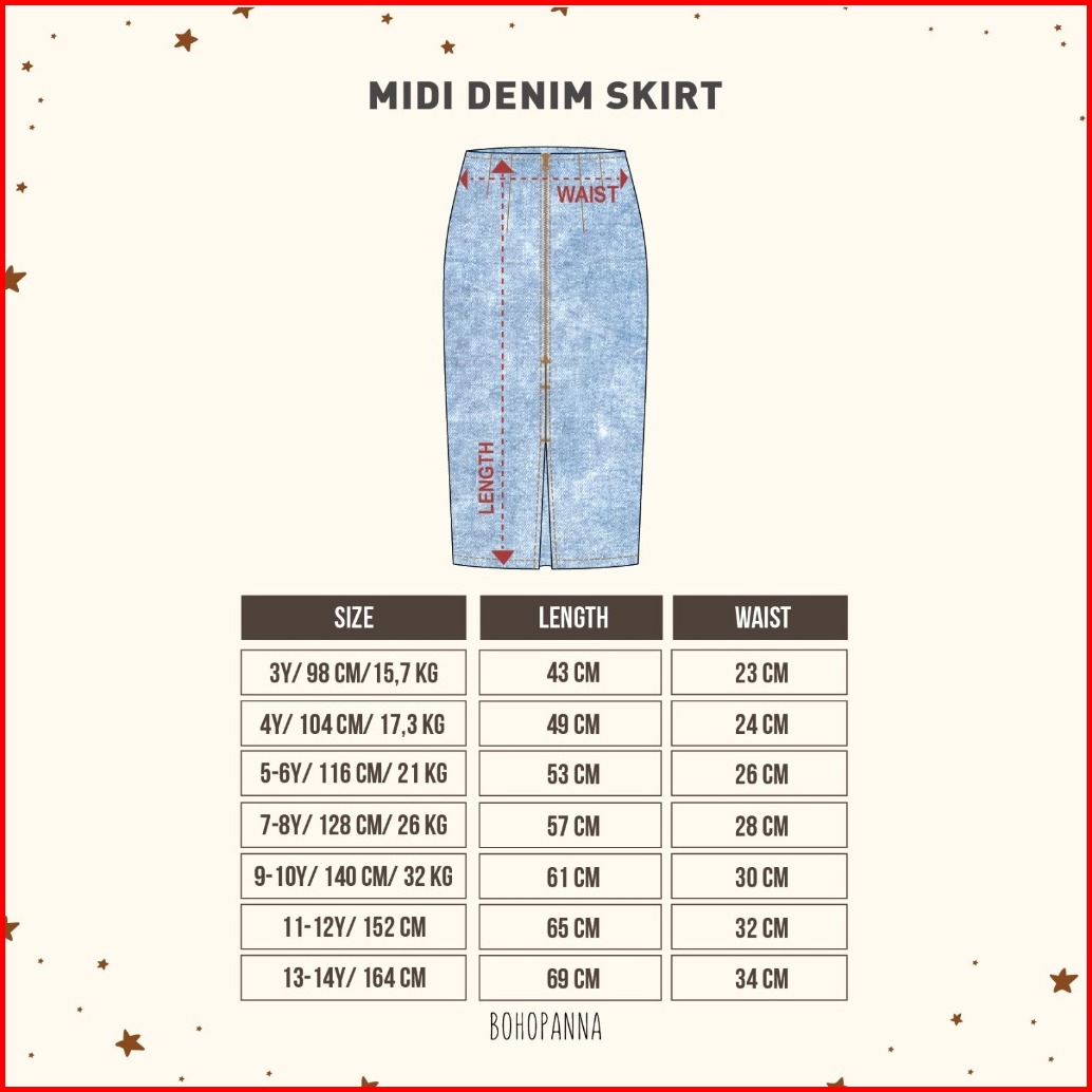 Bohopanna - Midi Denim Skirt - Rok Jeans - Rok Jeans Anak Perempuan