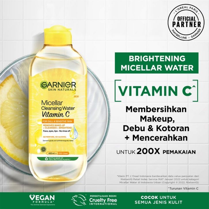 GARNIER Micellar Cleansing Water Vitamin C 125ml / 400ml /KHALISA STORE/SKINCARE GLOWING ORIGINAL/PRIA WANITA/O