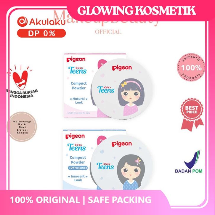 PIGEON TEENS Compact Powder + UV/GLOWING KOSMETIK/SKINCARE/ORIGINAL/PRIA WANITA/OFFICIAL/KECANTIKAN