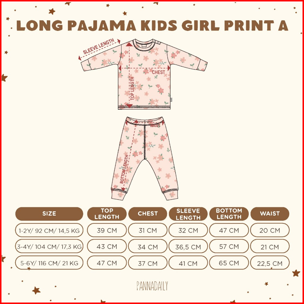 Bohopanna - Pannadaily - Panna Daily - Long Pajama Kids Girl Print - Flowers Series - Setelan Anak Perempuan